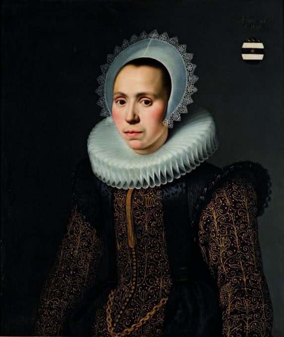 Cornelis van der Voort Anversa 1576 – Amsterdam 1624 RITRATTO DI GENTILDONNA DELLA FAMIGLIA VAN DER GRAEFF olio su tela, cm 78,5x66,5 Iscritto in alto a destra: Aetatis 26/A 1618 Provenienza: Isfi eld, Uckfi eld, Sussex, The Cottage; Phillips, Vendita 13-14/9/1988, lotto n. 621; Grimshaw Hall Knowle, Midlands (fi no al 2000); Torino, Galleria Luigi Caretto; Londra, Bonhams, Old Master Paintings, 07/12/2011, lotto n. 22; Milano, Collezione privata. Esposizioni: Torino, Galleria Caretto, 41a Mostra Maestri Fiamminghi e Olandesi del XVI-XVII secolo, 3 novembre – 3 dicembre 2000.