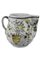 Caraffa in maiolica policroma con decorazione avvolgente su smalto azzurrognolo a rameggi fra i quali nelle due parti è dipinto un vaso che ricorda vagamente un kantaros etrusco con grandi anse e decorazione di gusto classico. Vaso molto bello e di grande qualità, H. cm.20; Ø bocca cm. 13