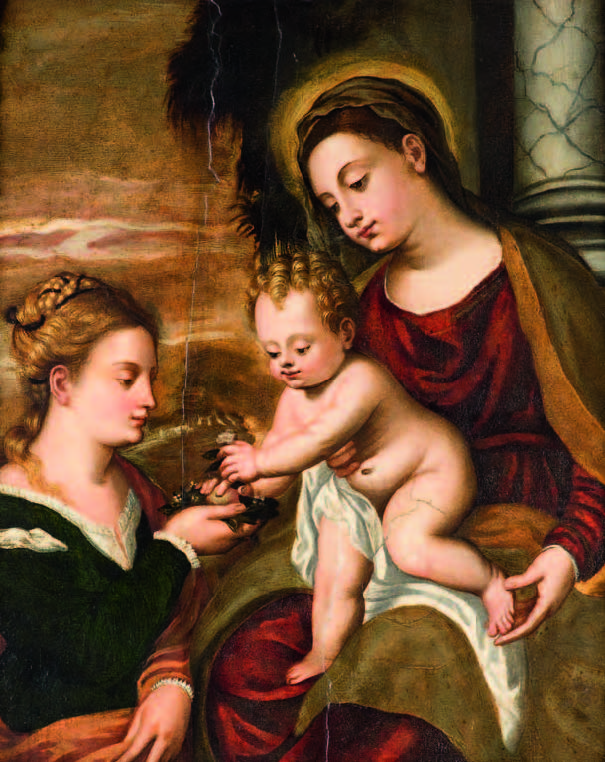 Polidoro da Lanciano Lanciano 1515 – Venezia 1565 MADONNA CON BAMBINO E SANTA DOROTEA olio su tavola, cm 50x41