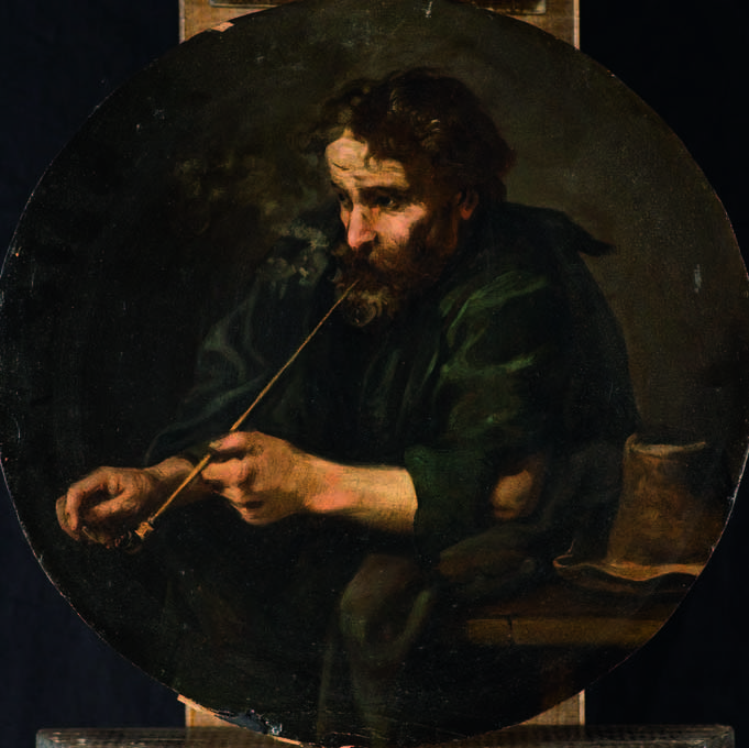 Eberard Keil detto Monsù Bernardo (cerchia) FUMATORE DI PIPA olio su tavola, diametro cm 36
