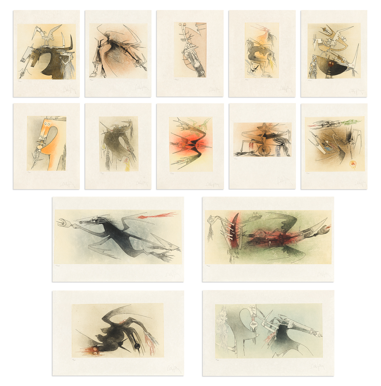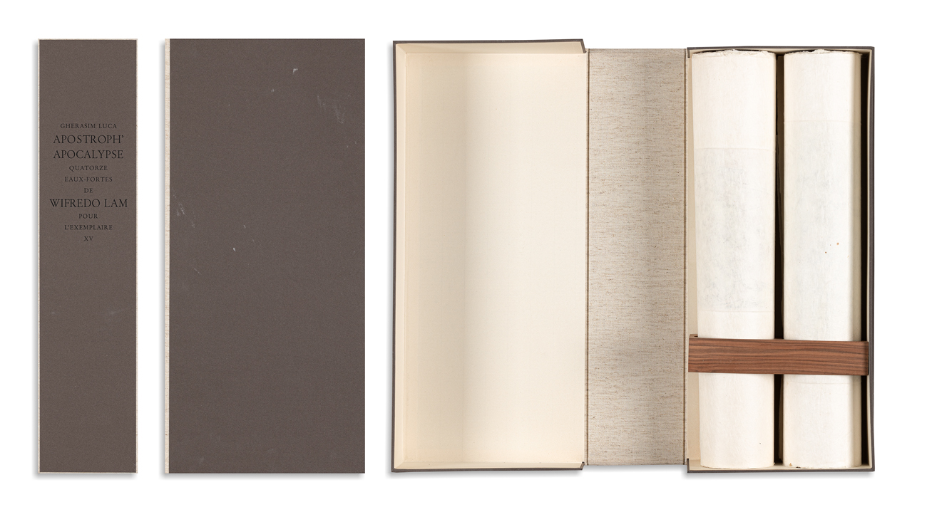 Cofanetto in cartone rigido contenete 14 acqueforti di Wifredo Lam su carta Filicarta