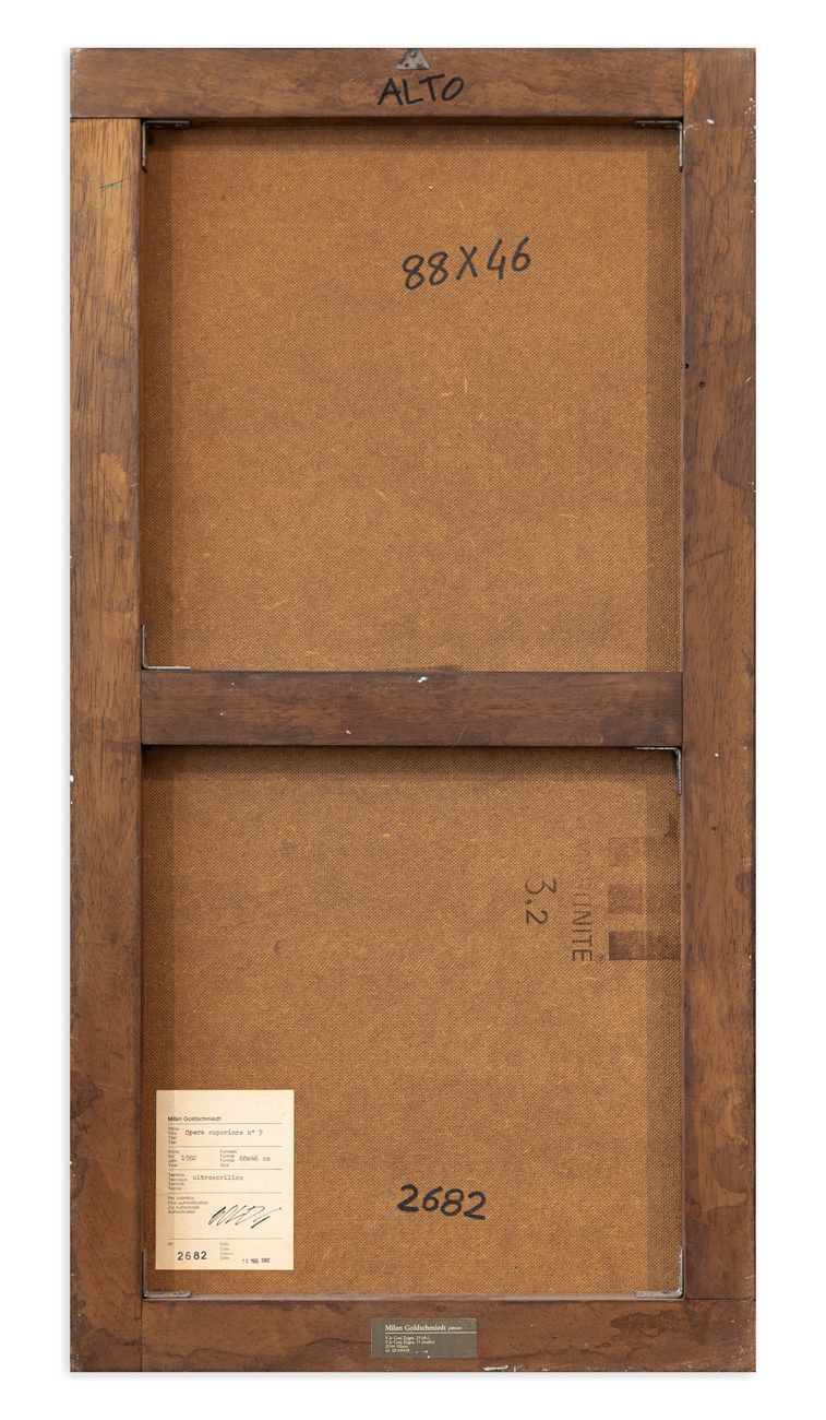 Etichetta dell'Artista al retro con firma, titolo, tecnica, misure e datazione