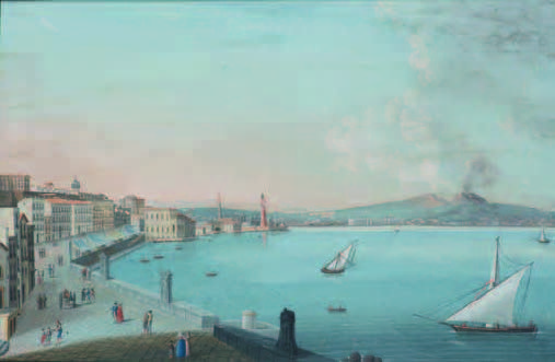 Scuola Napoletana del XIX secolo A) VEDUTA DI NAPOLI DA CHIAIA, B) VEDUTA DI NAPOLI DA PIZZOFALCONE gouache su carta, cm 26x39