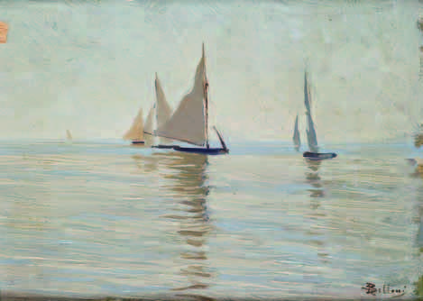 Giorgio Belloni Codogno 1861 – Mezzegra 1944 BARCHE olio su tavola, cm 16x20. Firmato in basso a destra: G Belloni Provenienza: Milano, Galleria Pesaro (etichetta al retro)