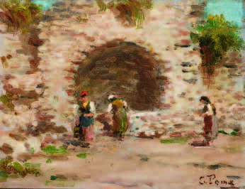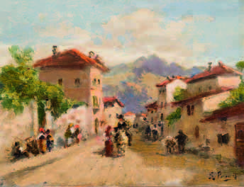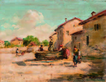 Silvio Poma Trescore Balneario 1840 – Turate 1932 A) B) C) D) PAESAGGIO olio su tavoletta, cm 14,5x19. Firmati: Poma.