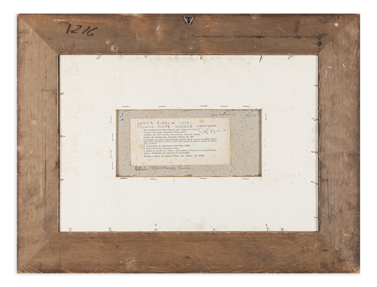 Etichetta dell'Artista con firma, titolo, datazione, tecnica e misure al retro