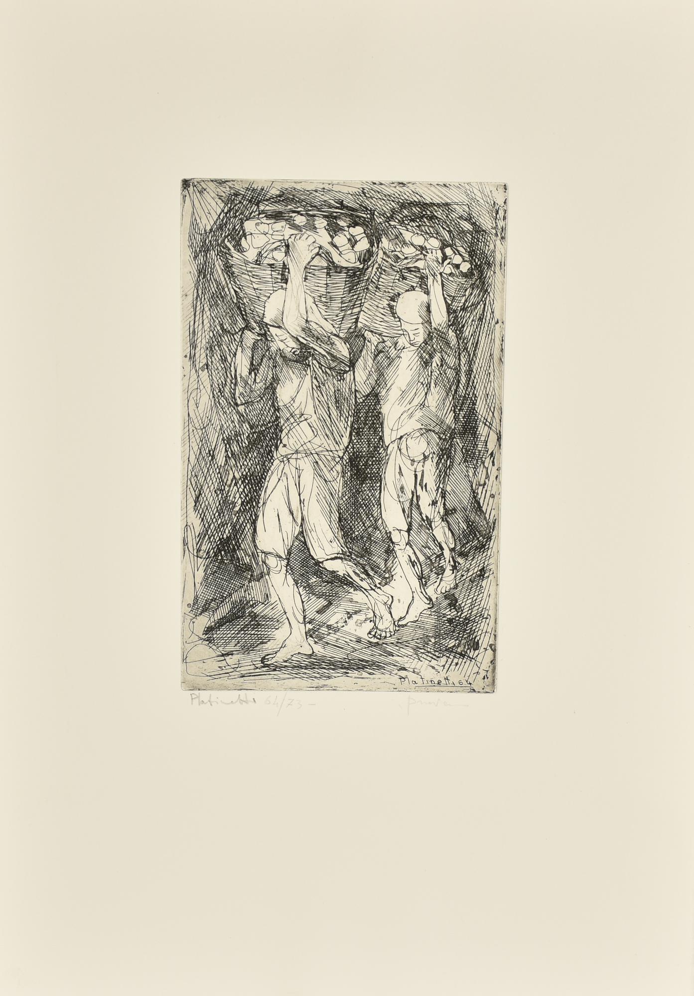 Fulvio Platinetti PORTATORI DI POMICE acquaforte su carta, battuta cm...