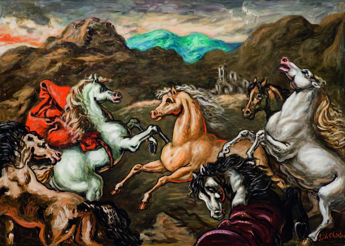 GIORGIO DE CHIRICO Volo, Grecia 1888 - Roma 1978 CAVALLI olio su tela, cm...