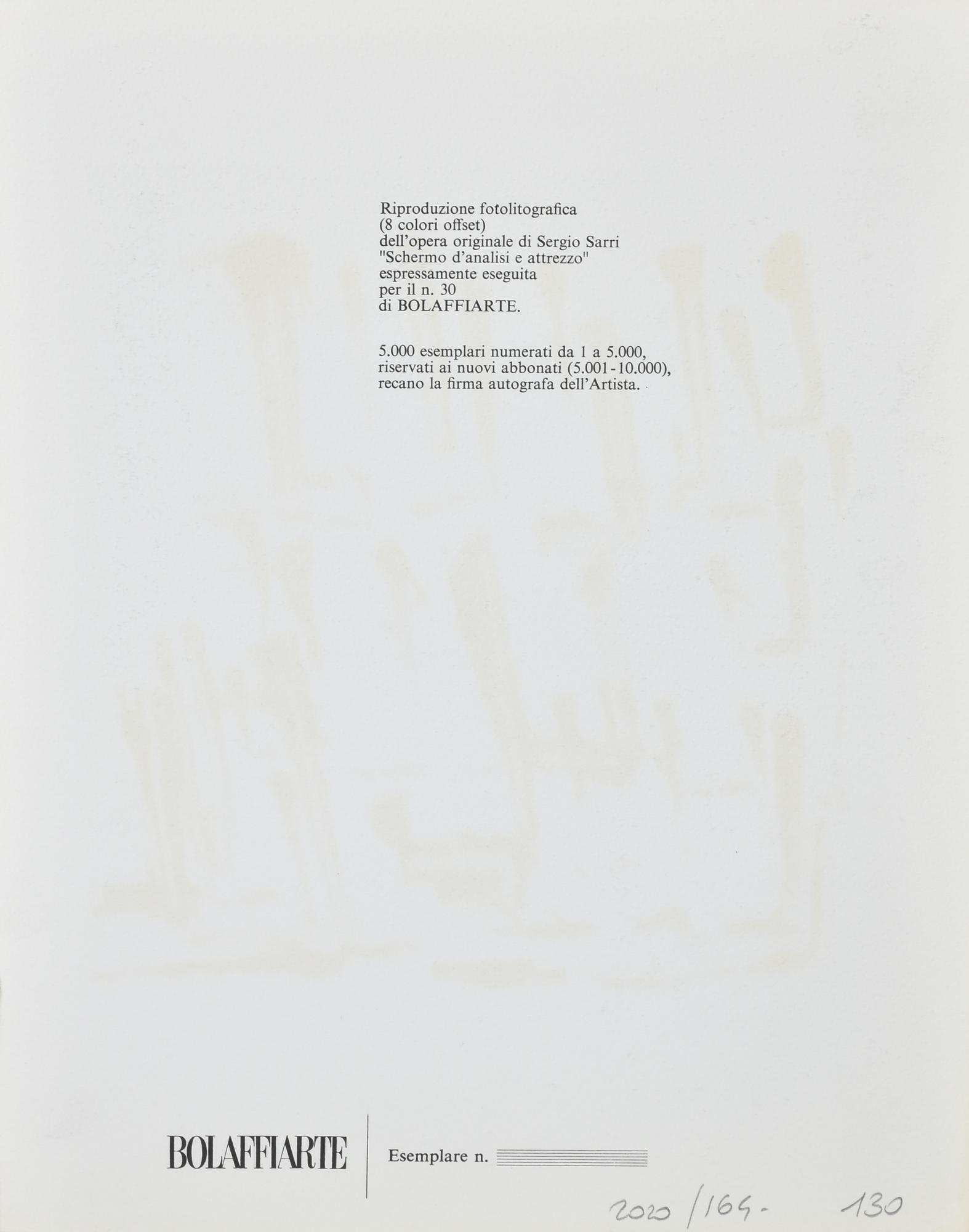Sergio Sarri SCHERMO D'ANALISI E ATTREZZO riproduzione fotolitografica su...