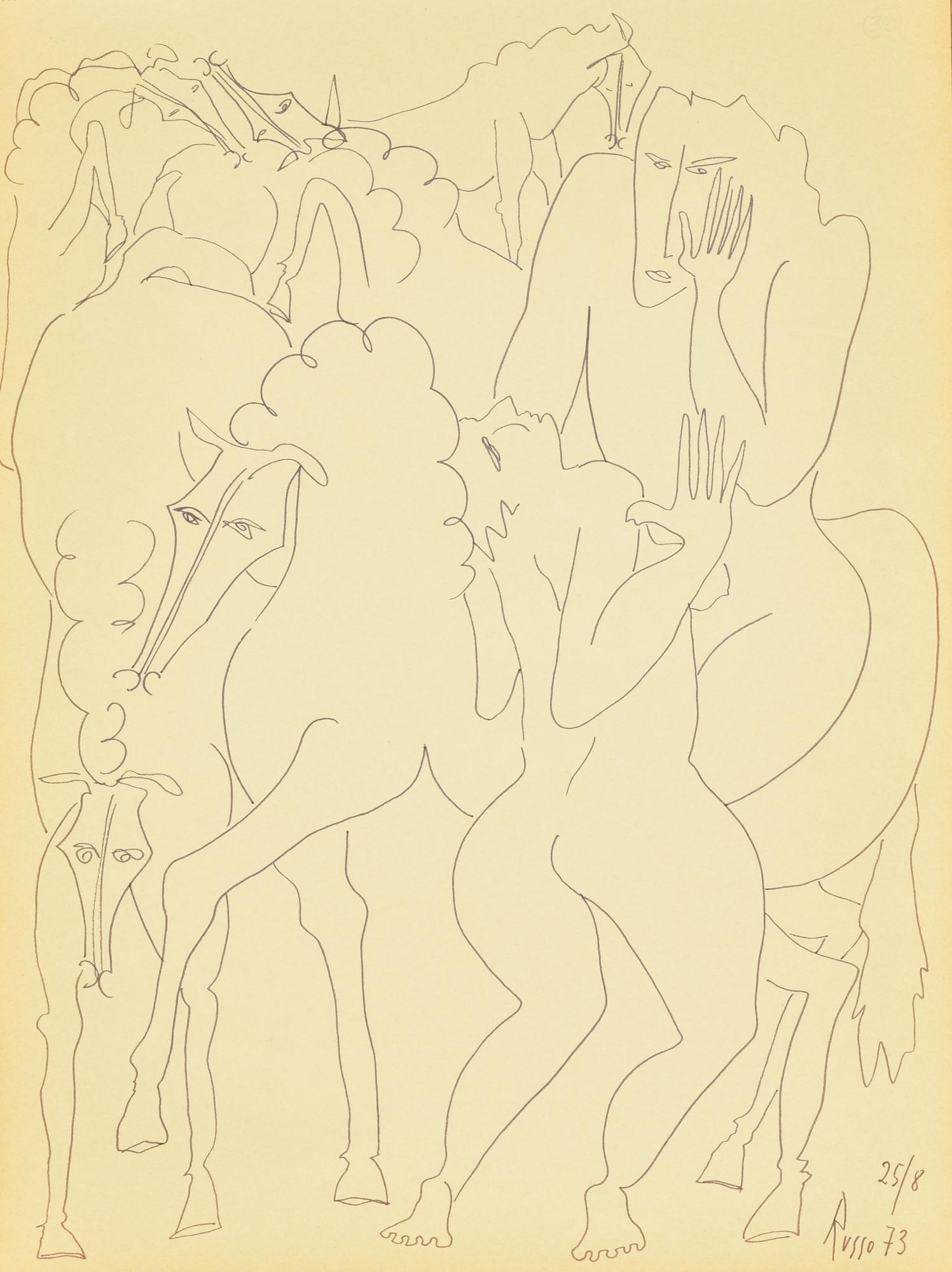 Lotto 100 | Russo UOMO A CAVALLO pennarello su carta, cm 40x30 firma e data eseguito nel...