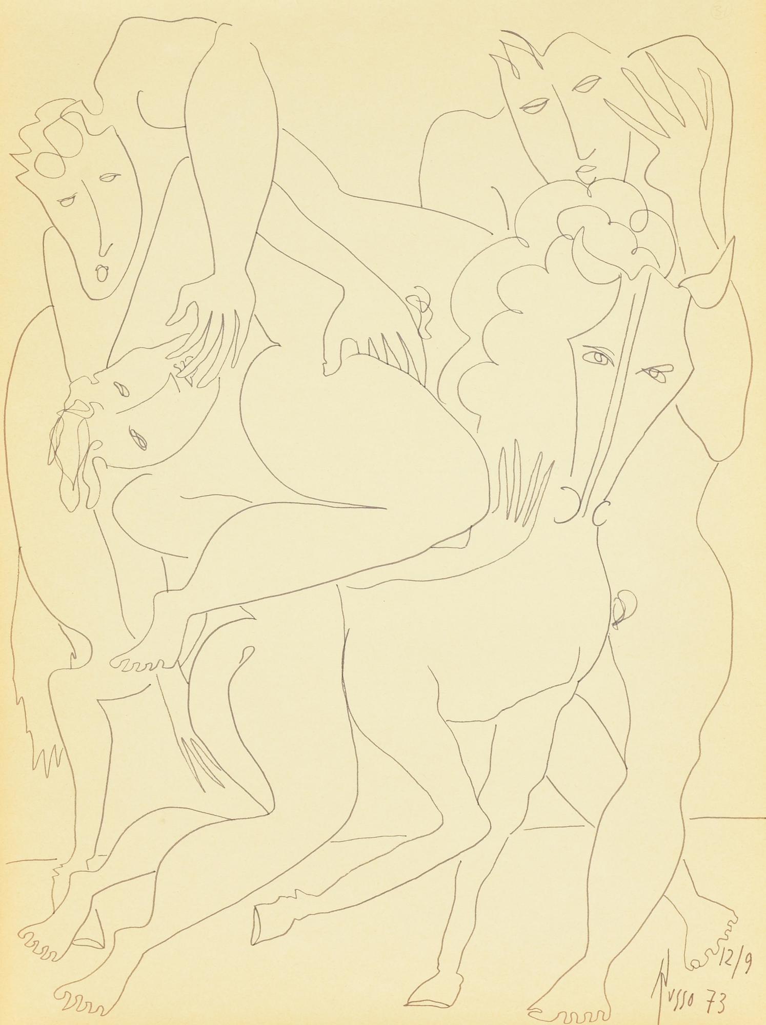 Russo FIGURE E CAVALLO pennarello su carta, cm 40x30 firma e data eseguito...