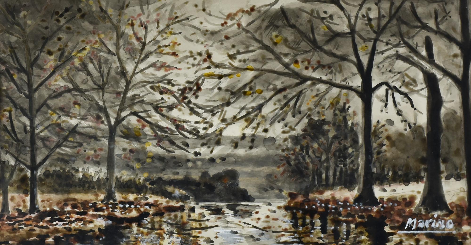 Marino PAESAGGIO FLUVIALE acquarello su carta, cm 26x40 firma