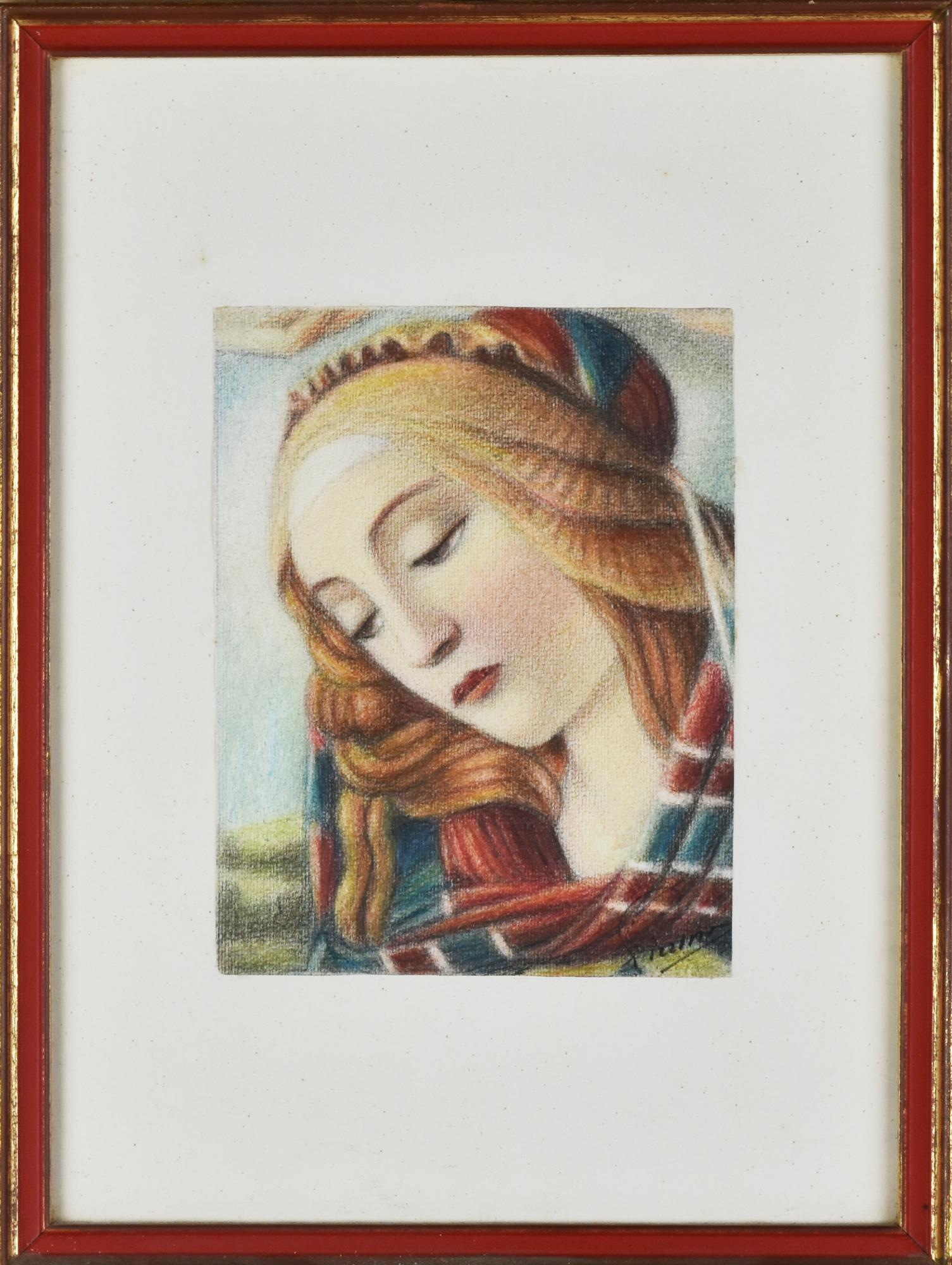 Lotto 150 | Ignoto LA DAMA pastelli su carta, cm 20x15 firma