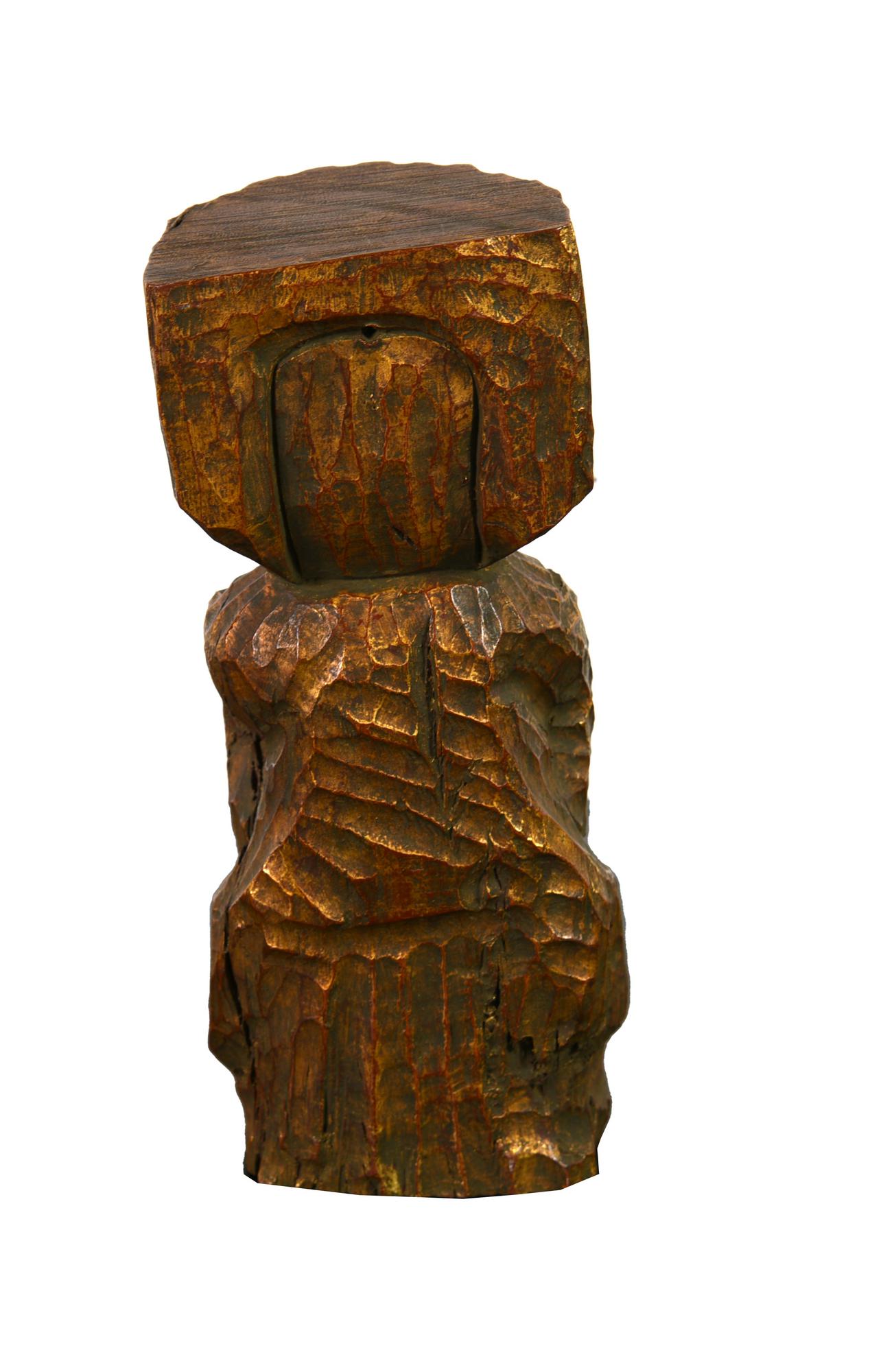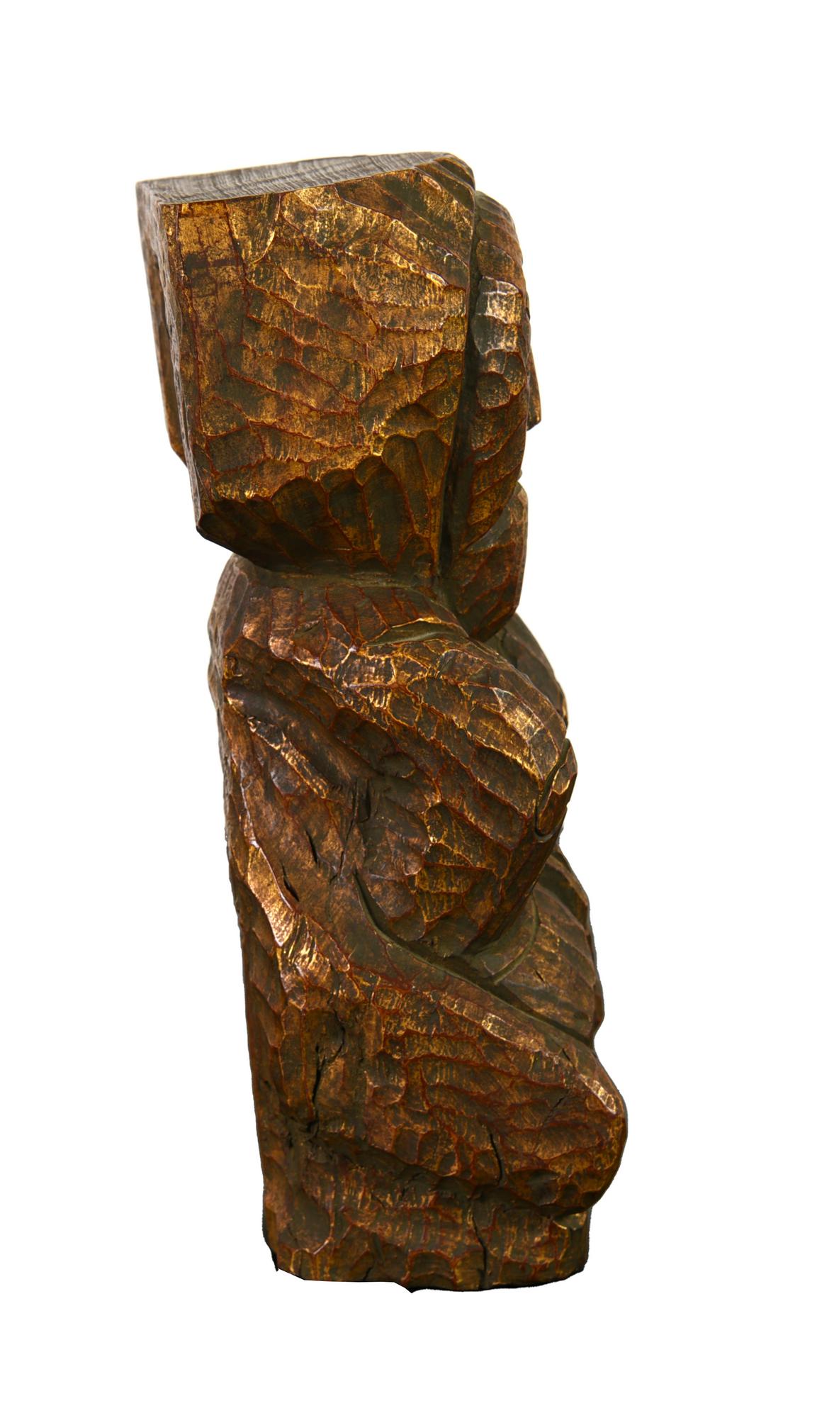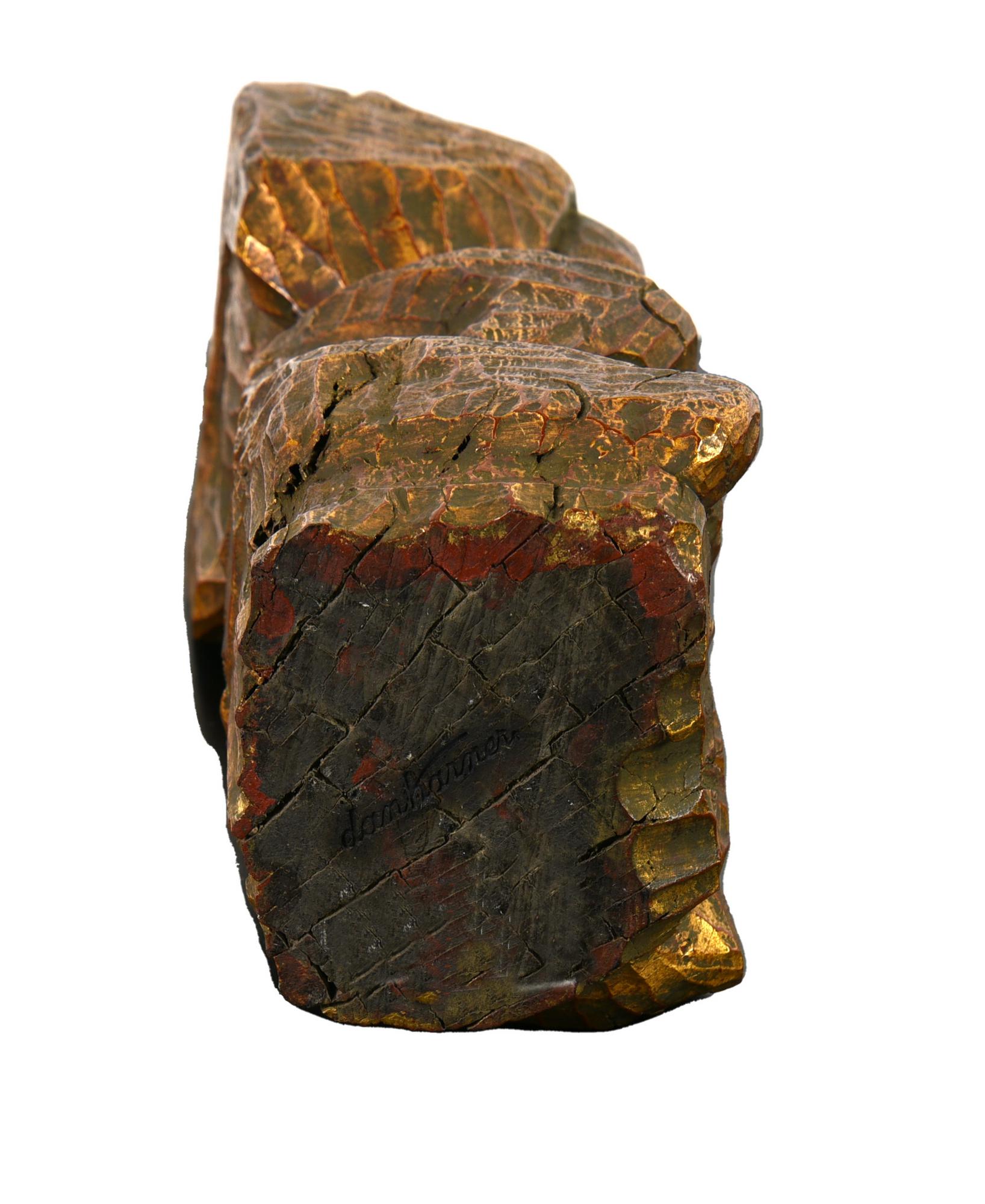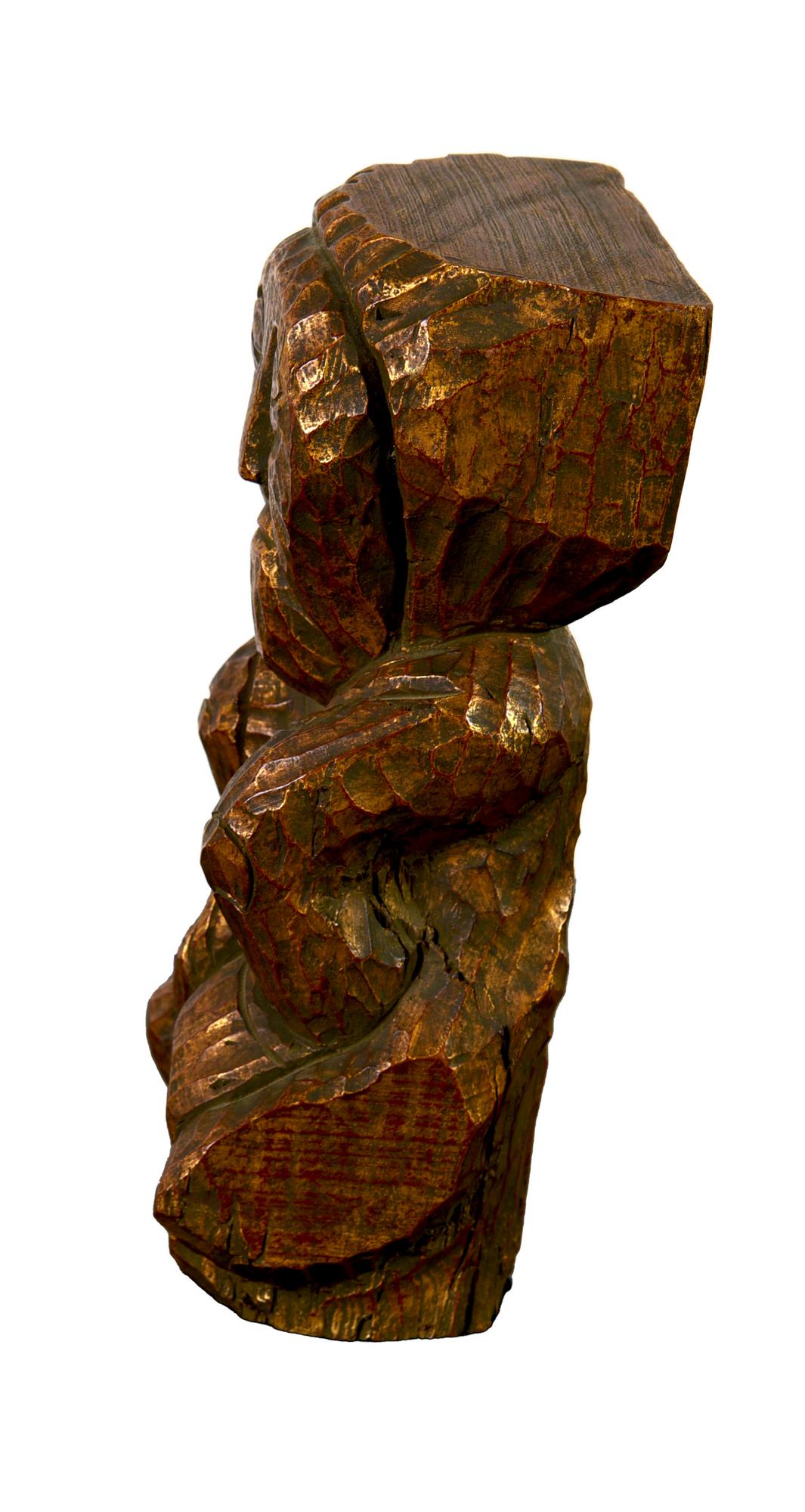 Dan Karner FIGURA legno dorato, h cm 29 sotto la base: firma