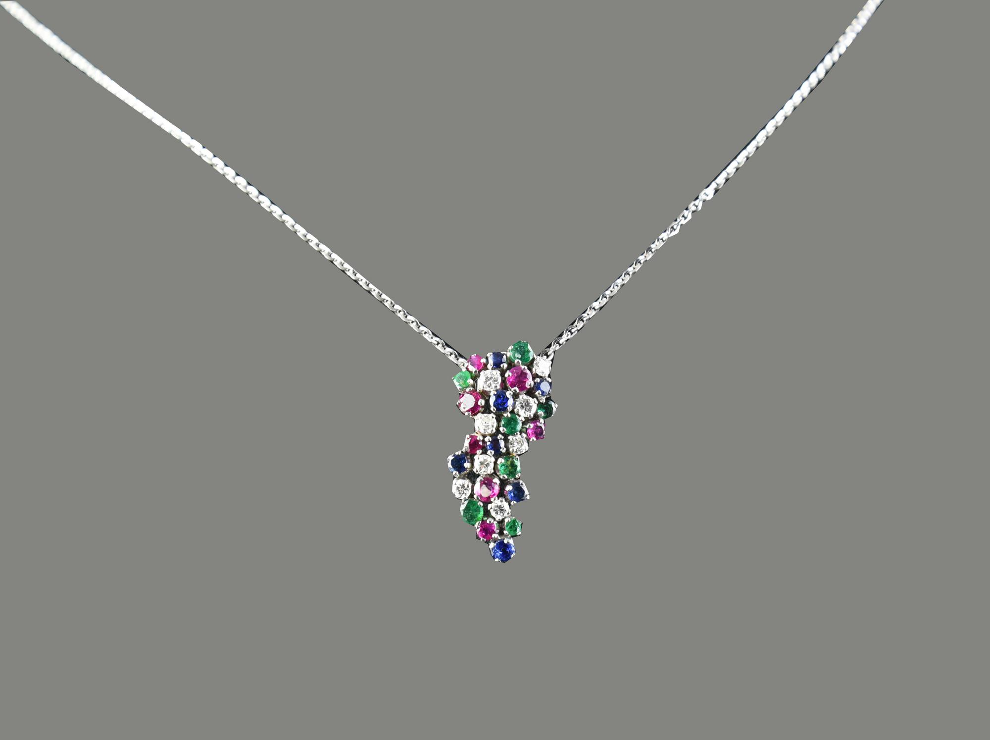 PENDENTE "TUTTI FRUTTI" CON CATENINA IN ORO BIANCO