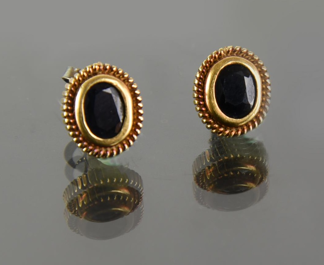 COPPIA DI ORECCHINI OVALI CON PICCOLO GRANATO AL CENTRO