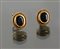 COPPIA DI ORECCHINI OVALI CON PICCOLO GRANATO AL CENTRO in metallo dorato,...