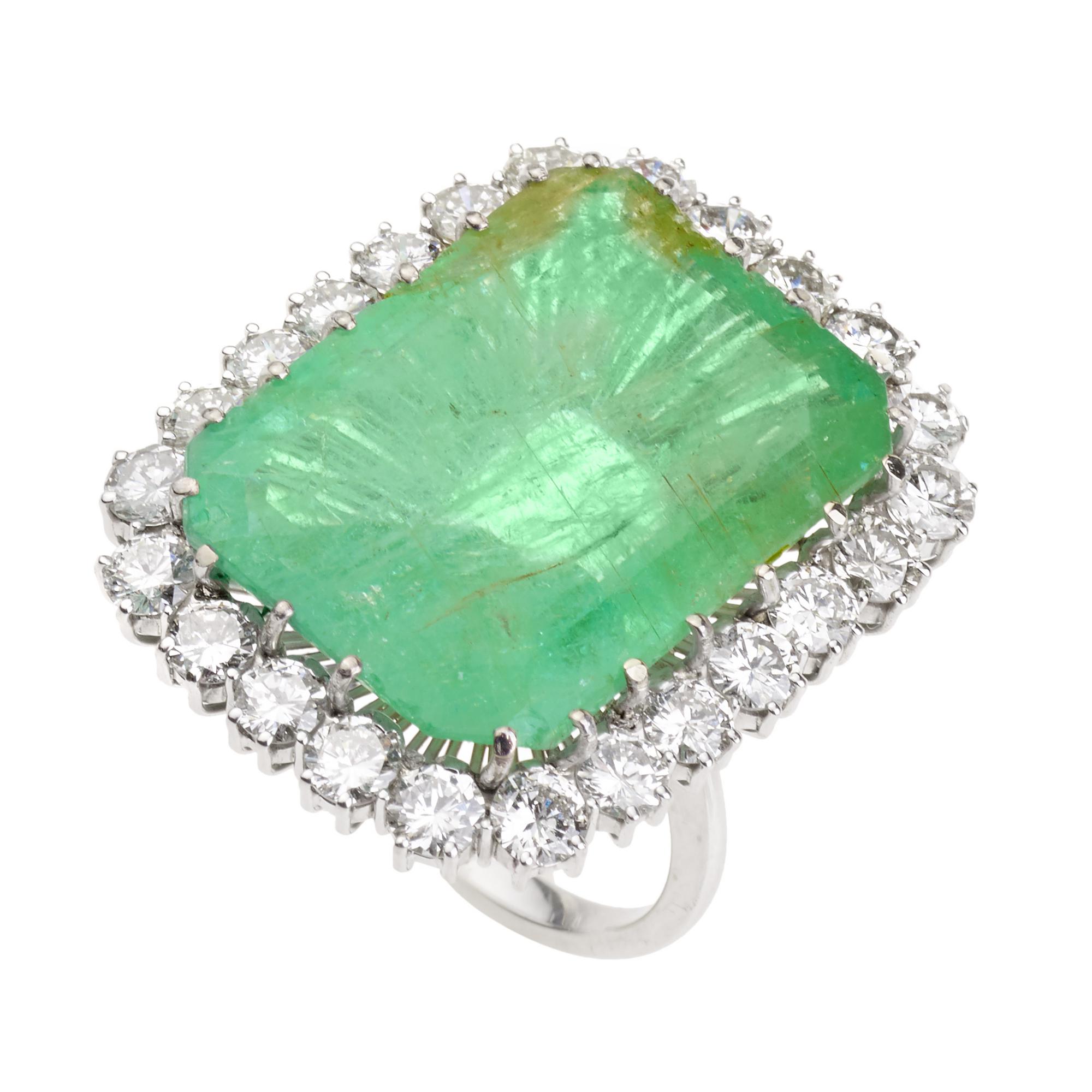 al centro uno smeraldo di 20 ct circa entro contorno in diamanti per ct 2,50 ct circa.