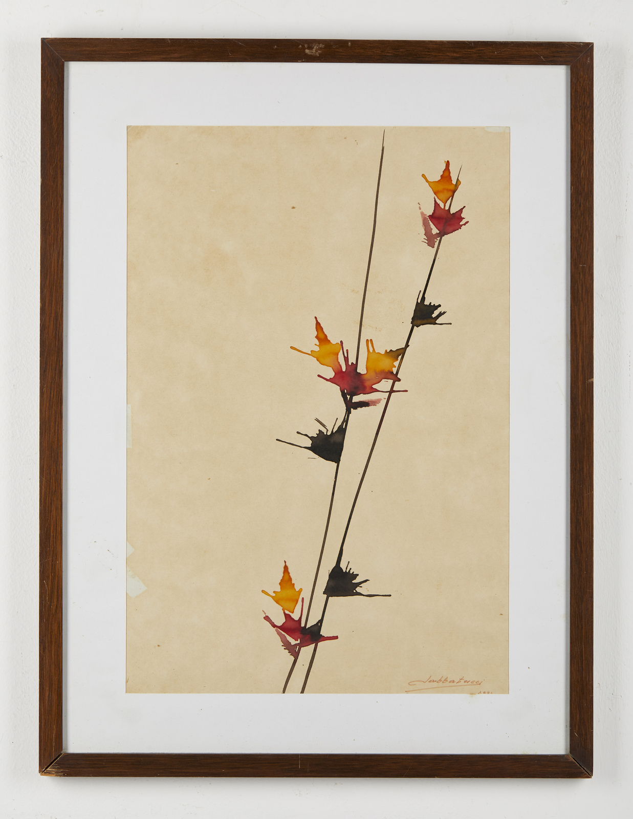 SABBATUCCI LUCIANO (1929 - 2014) Senza titolo. 1971. Gouache su carta. Cm 34,50 x 50,00. Firma in basso a destra. Cornice presente