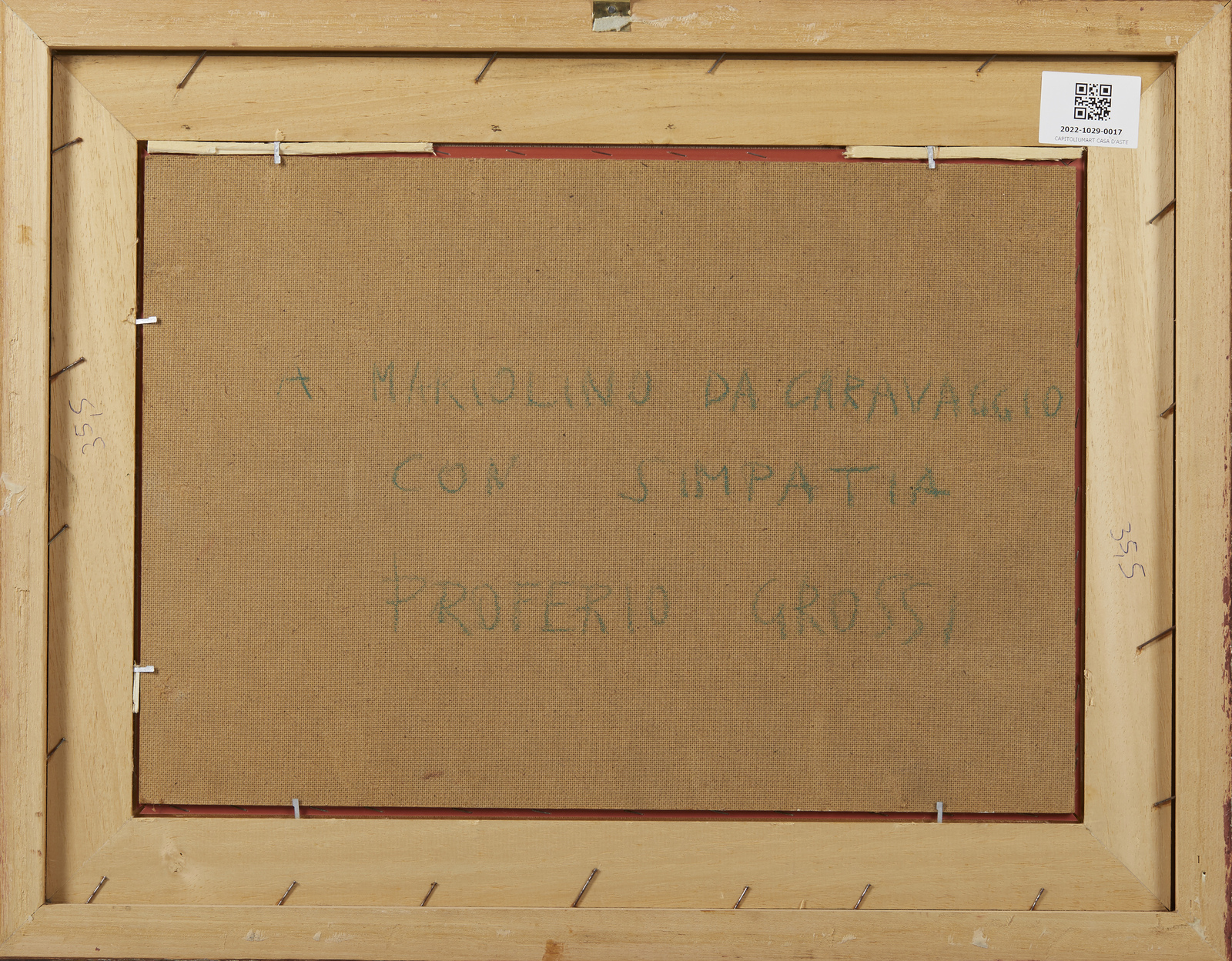 GROSSI PROFERIO (1923 - 2000) Senza titolo. 1986. Olio su faesite. Cm 50,00 x 35,00. Firma e anno in basso a destra. Al retro firma e dedica. Cornice presente