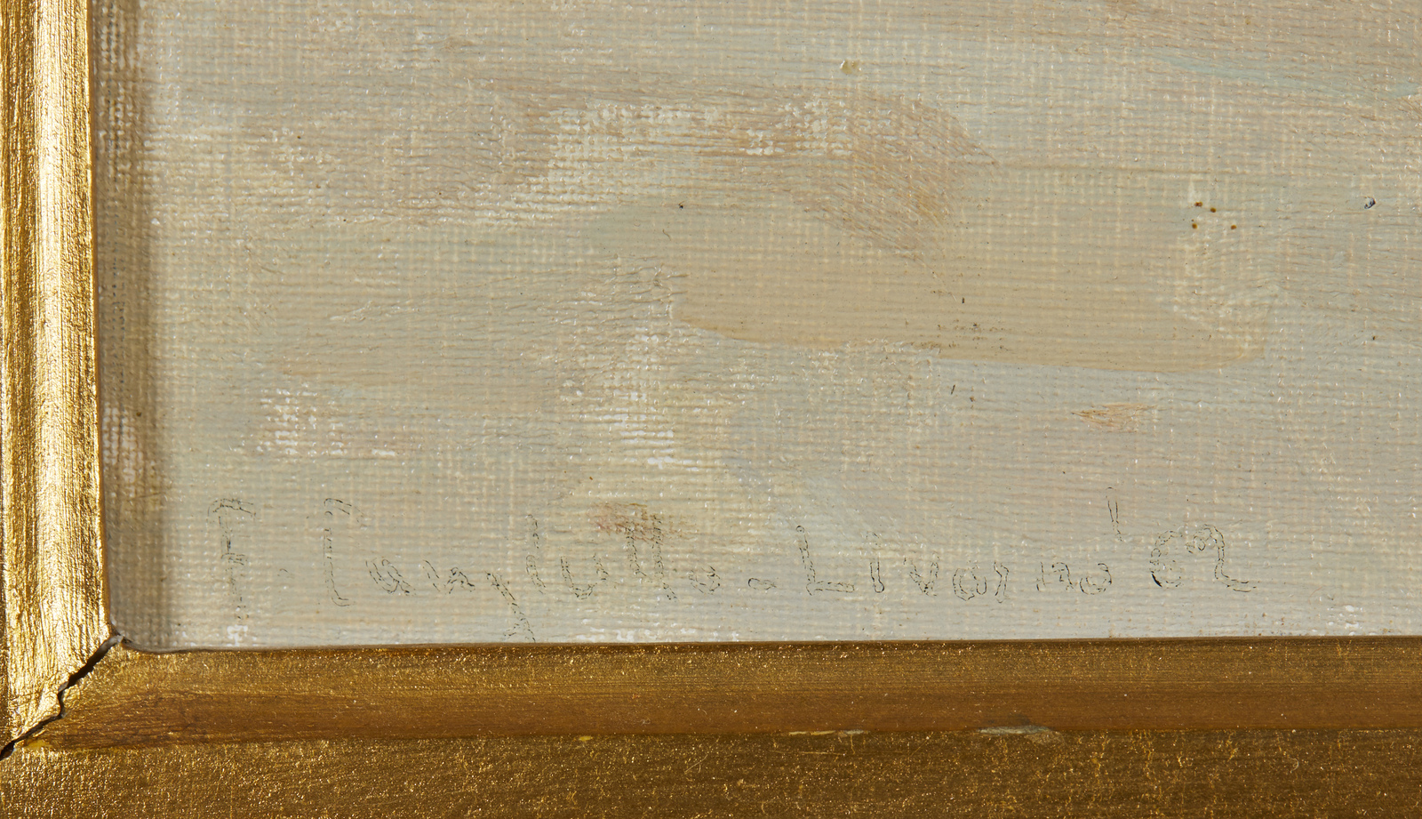 CANGIULLO FRANCESCO (1884 - 1977) Livorno, i fossi del quartiere Venezia. 1962. Olio su tela incollata su cartone. Cm 50,00 x 40,00. Firma e anno in basso a sinistra. Cornice presente