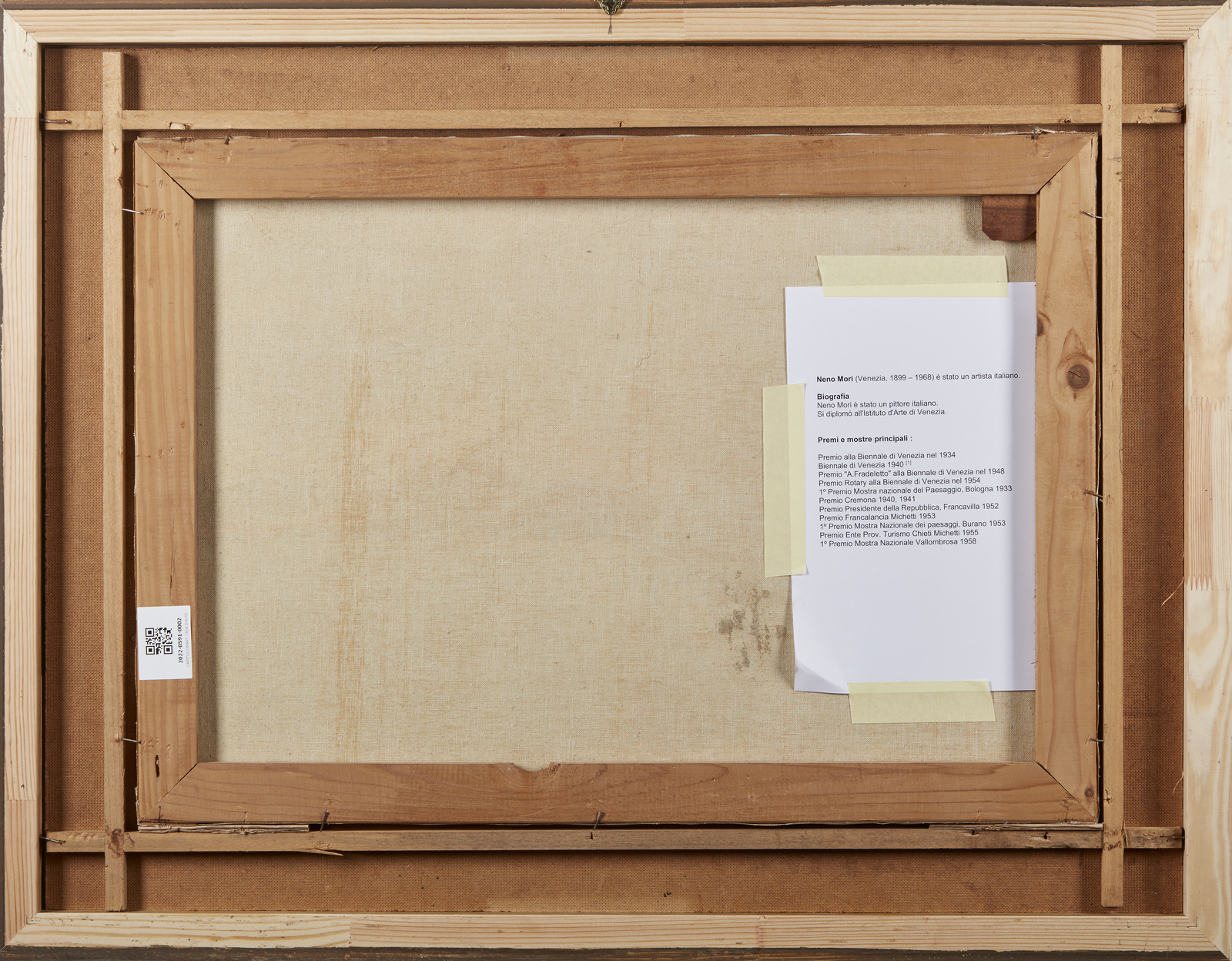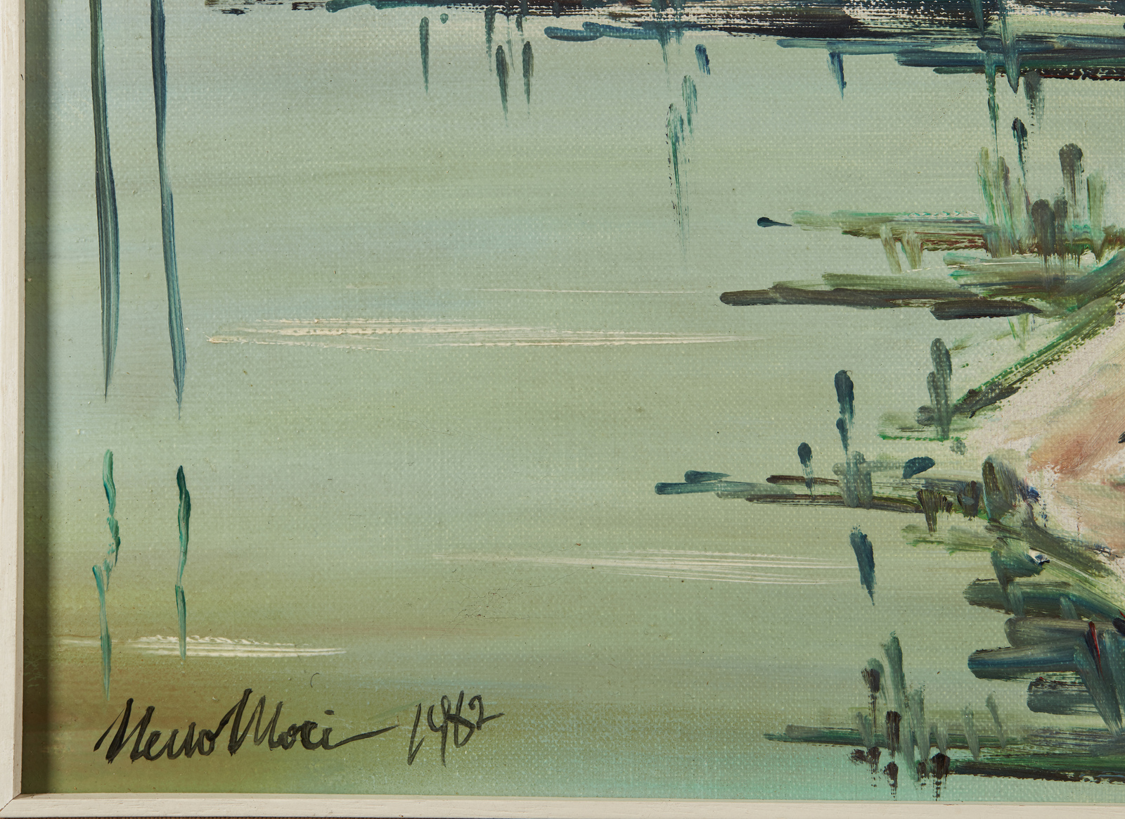 MORI NENO (1899 - 1968) Paesaggio di barena. . 1962. Olio su tela . Cm 70,00 x 50,00. Firma e anno in basso a sinistra. Provenienza: Collezione Rinaldi. Lievi difetti. Cornice presente