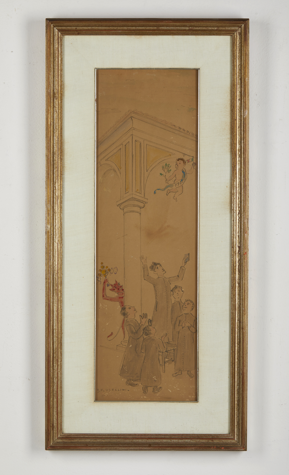 USELLINI GIANFILIPPO (1903 - 1971) Senza titolo. 1955. Tecnica mista su cartoncino. Cm 21,50 x 65,00. Firma in basso a sinistra a matita. Anno in alto a destra a matita. Difetti. Cornice presente