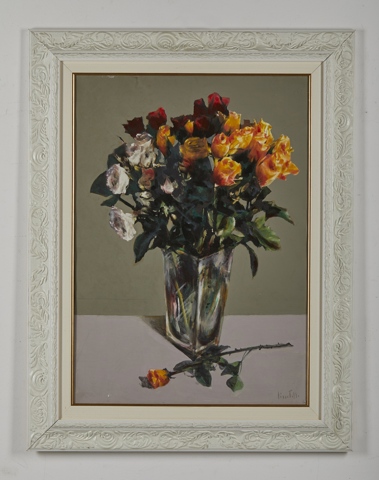 CICCOTELLI BENIAMINO (n. 1937) Senza titolo. Olio su tela . Cm 50,00 x 70,00. Firma in basso a destra. Firma al retro. Autentica dell'artista su fotografia. Cornice presente