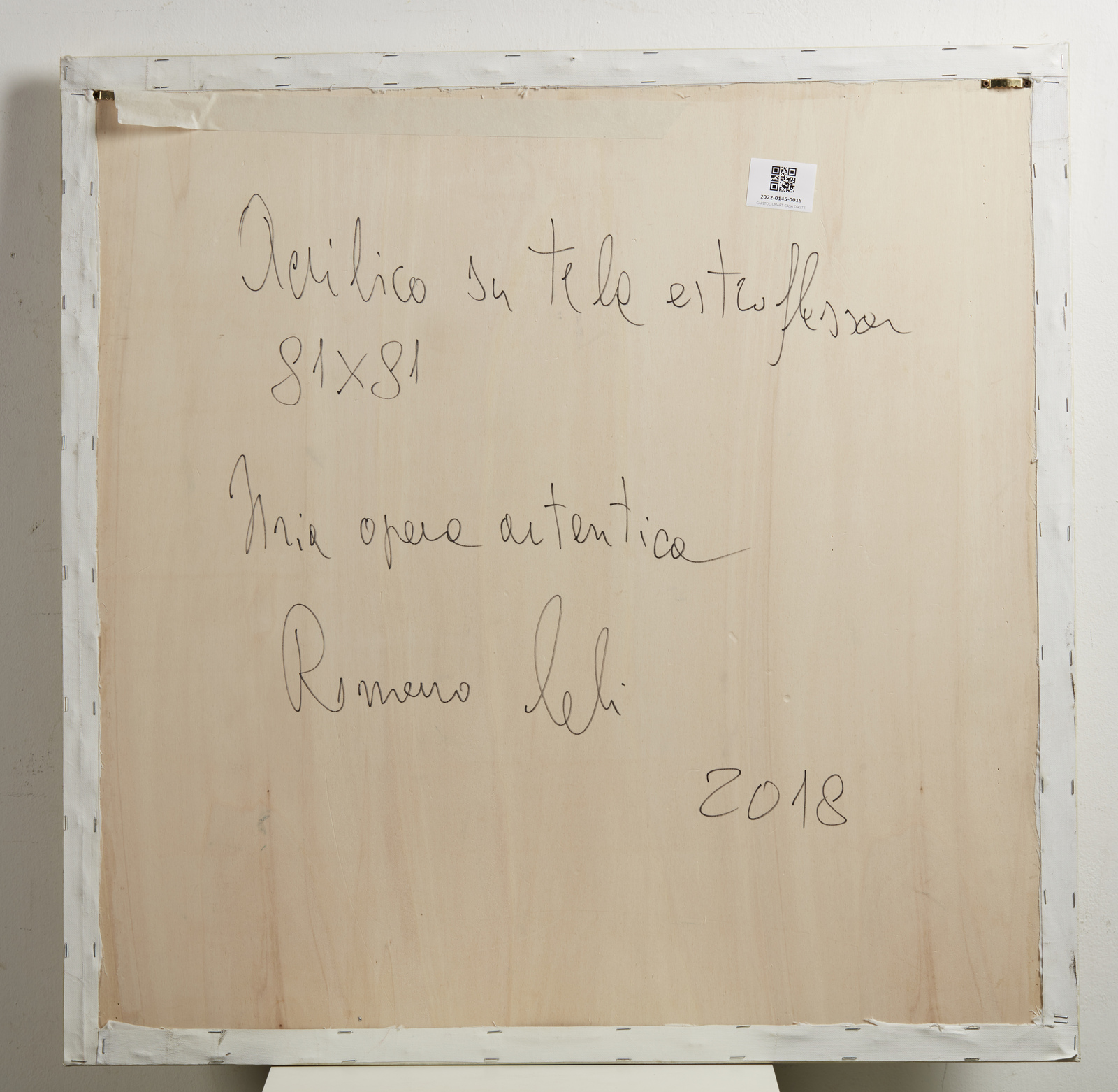 ROMANO LELI (n. 1957) Senza titolo. 2018. Tecnica mista su tela. Cm 81,00 x 81,00. Al retro firma e anno. Autentica dell'artista su fotografia. Lievi difetti.