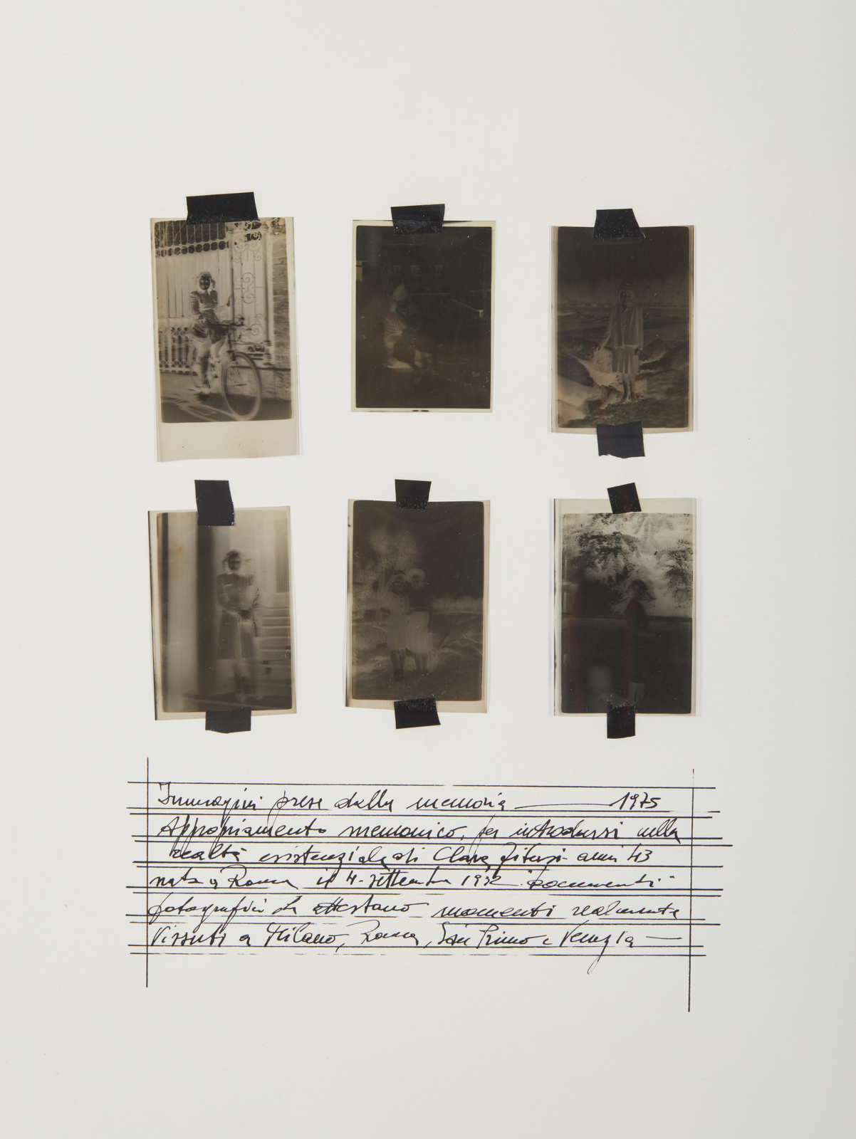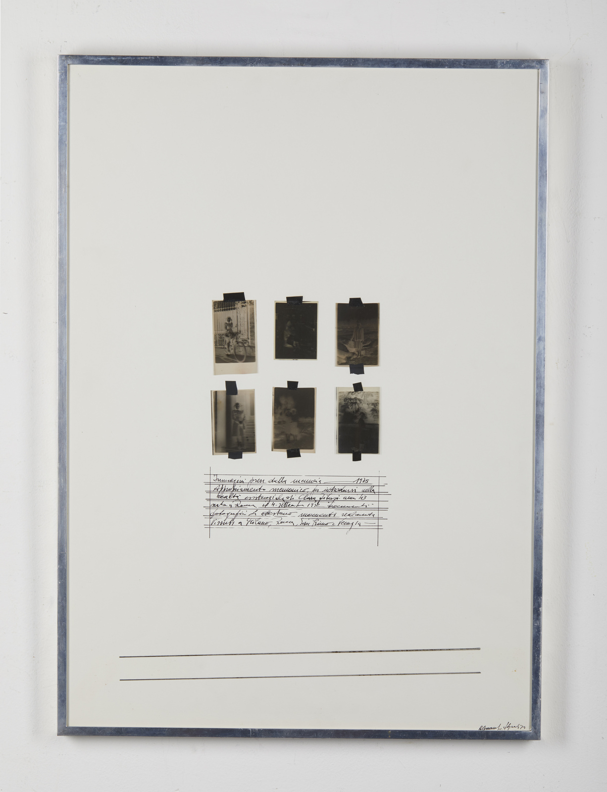 ALGARDI ALESSANDRO (n. 1945) Immagini prese dalla memoria. 1975. Biro e negativi fotografici applicati su carta. Cm 50,00 x 70,00. Firma e anno in basso a destra. Certificato di provenienza Martini Arte, Brescia. Lievi difetti. . Cornice presente