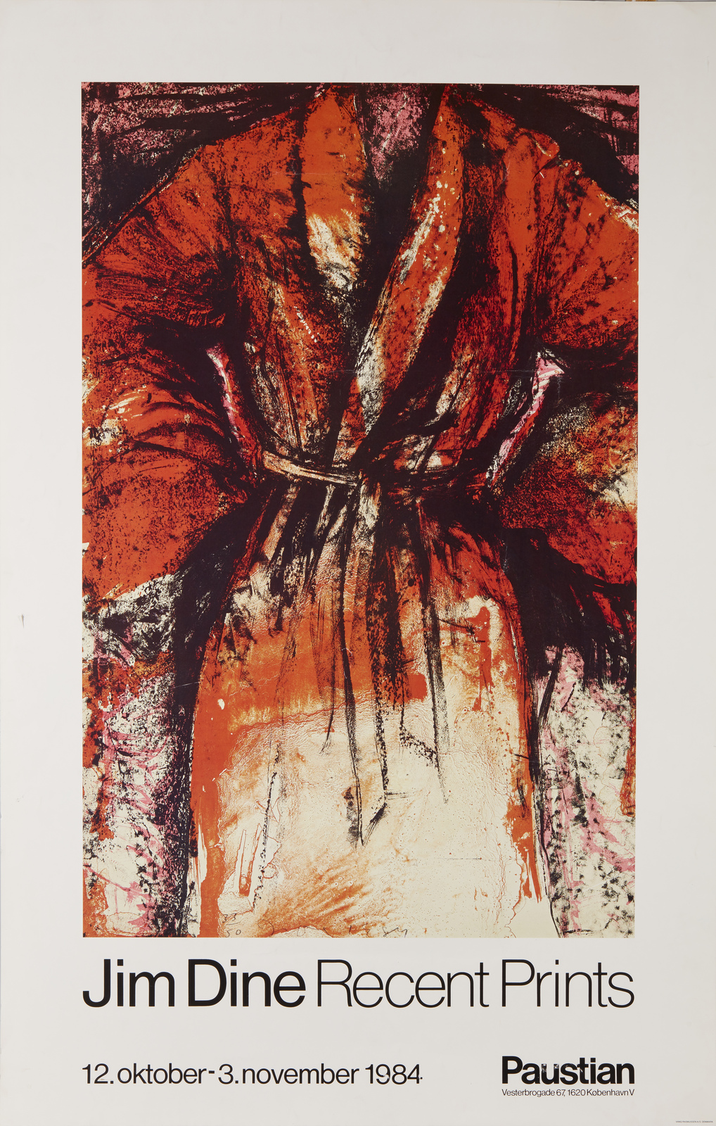 DINE JIM (n. 1935) Jim Dine Recent Prints. 1984. Manifesto. Cm 80,00 x 125,00. Poster edito dalla Galleria Paustian, Copenaghen, in occasione della mostra Jim Dine Recent Prints, 1984. Difetti.