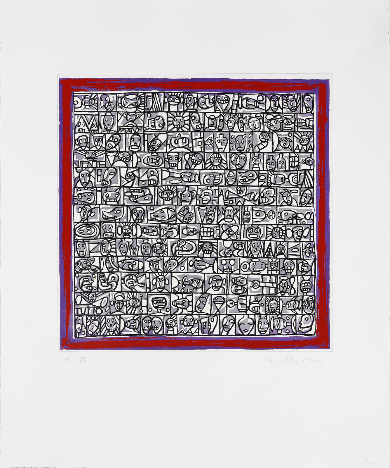 ECHAURREN PABLO (n. 1951) Senza titolo. Acquatinta. Cm 50,00 x 60,00. VI/VIII. Tiratura e firma in basso a matita. Edizione totale: 60 +VIII. Dimensione lastra: 35.5x35.5 cm. Timbro a secco Stamperia Berardinelli, Verona, in basso a destra.