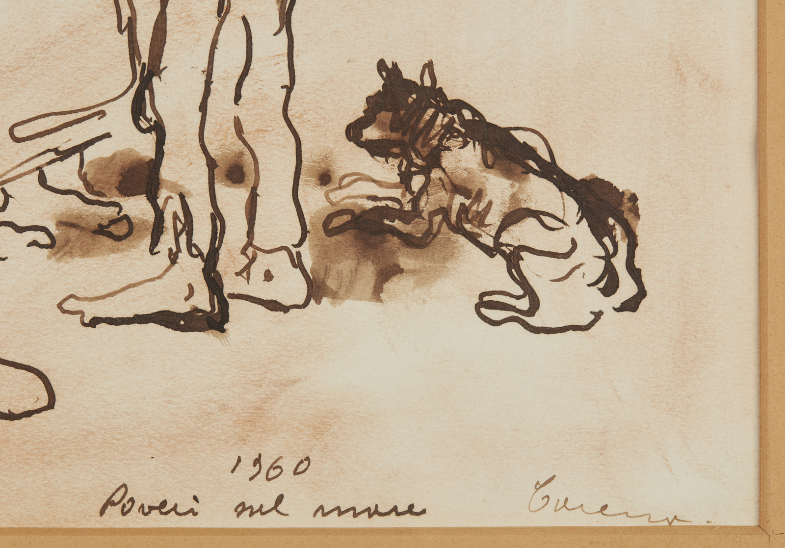 CARENA FELICE (1879 - 1966) Poveri nel mare. 1960. Tecnica mista su carta. Cm 23,00 x 33,00. Titolo, firma e anno in basso. Provenienza: Casa d'Aste Babuino, Roma; collezione privata, Roma. Lievi difetti.