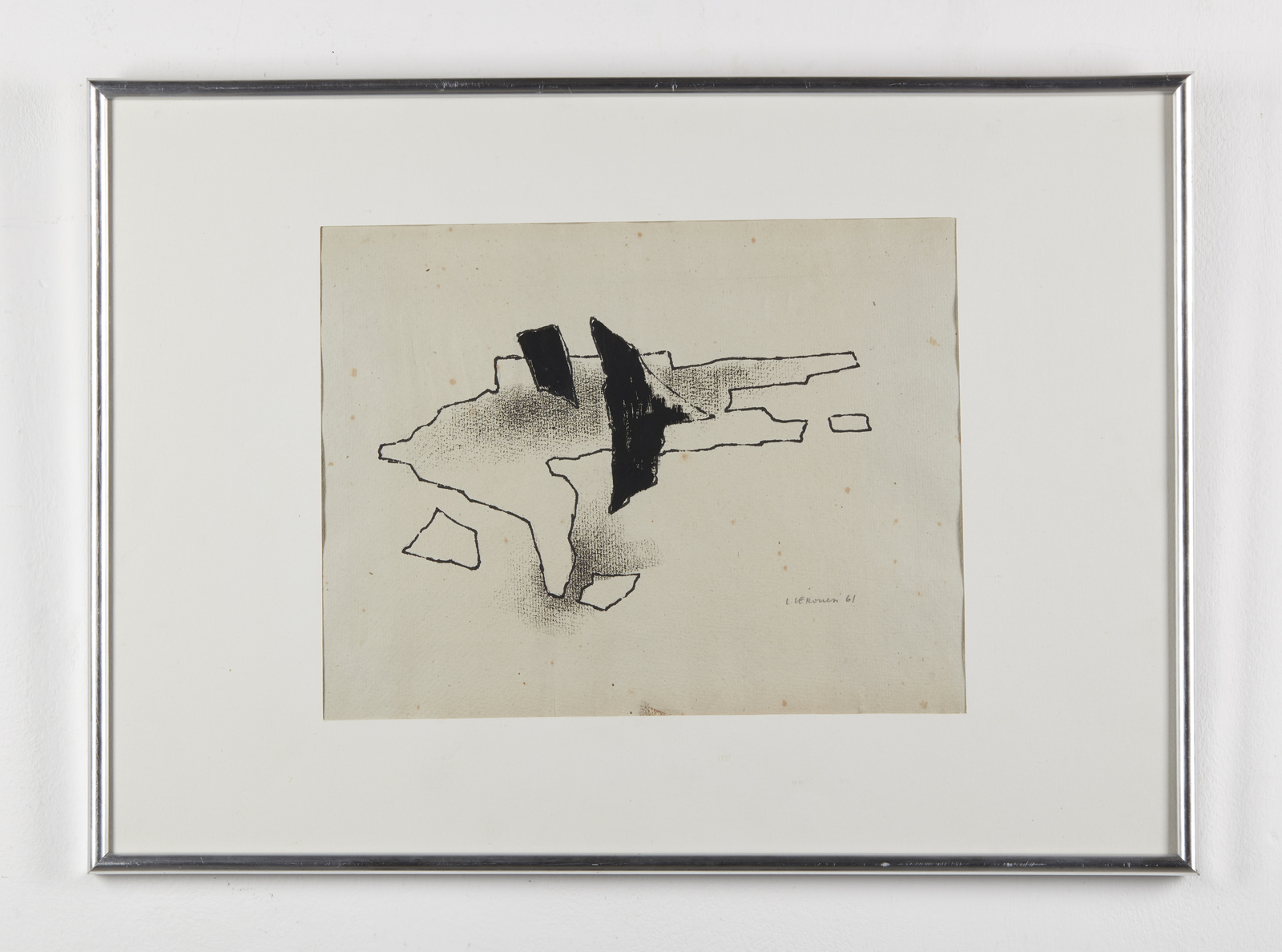 VERONESI LUIGI (1908 - 1998) Senza titolo. . 1961. Tecnica mista su carta. Cm 42,00 x 30,00. Firma e anno in basso a destra. Opera archiviata presso il Comitato Luigi Veronesi, Milano, come da documentazione fotografica allegata all'opera riportante il relativo numero d'inventario. Certificato di autenticità Studio d'arte Mutinese, Modena. Difetti. . Cornice presente
