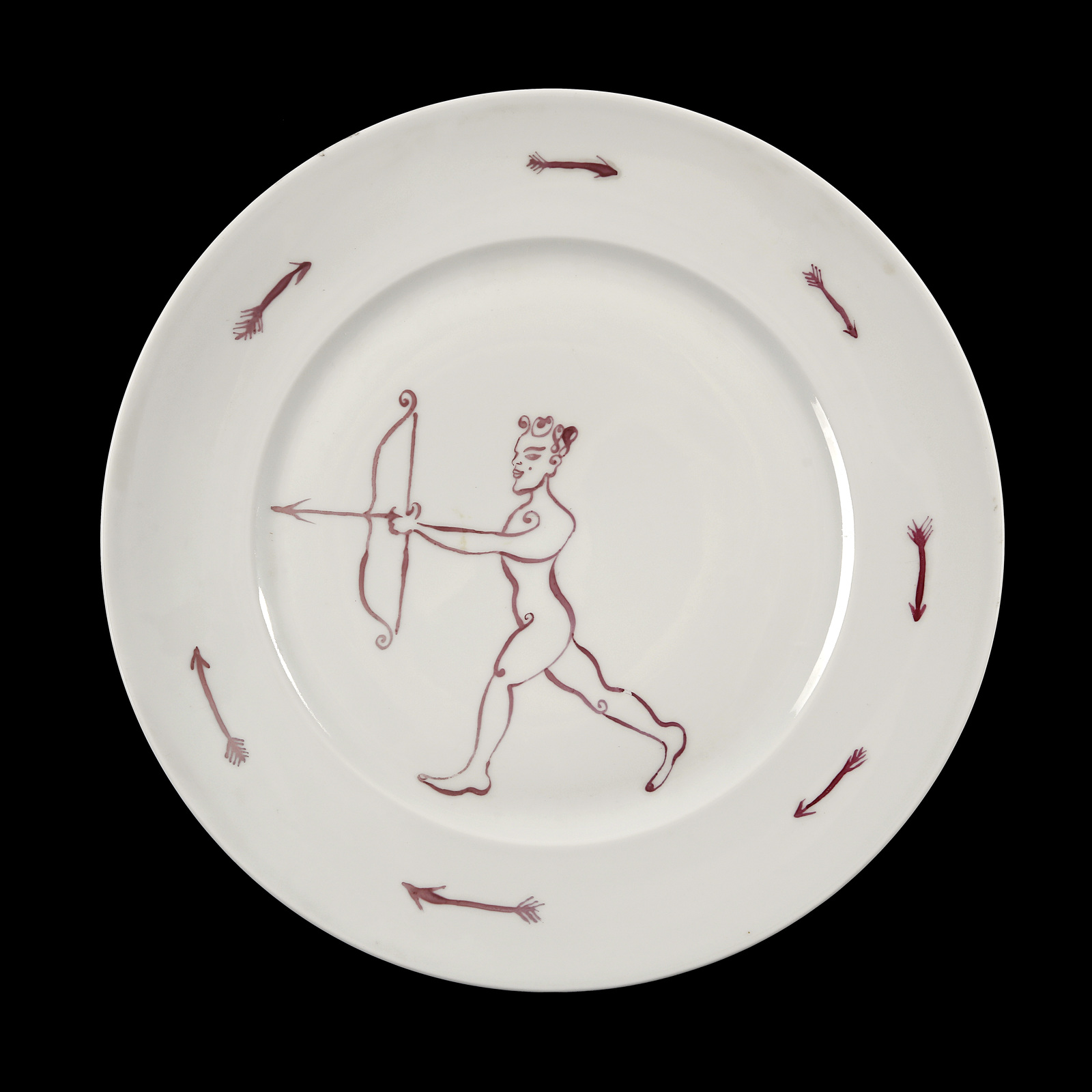 ONTANI LUIGI (n. 1943) Cupido. 1985. Piatto in ceramica. Cm 26,00 x 26,00. Esemplare unico. Al retro firma e anno.