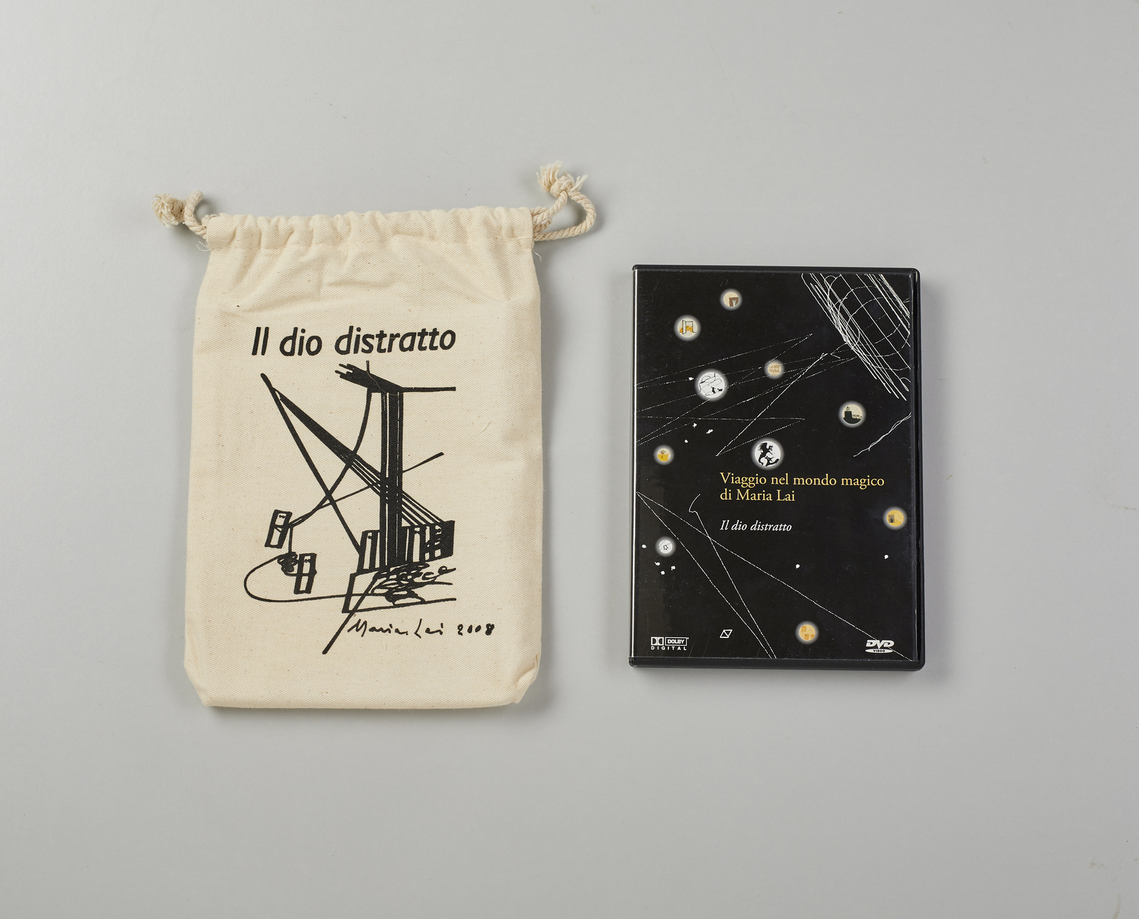 LAI MARIA (1919 - 2013) Il dio distratto. 2008. Multiplo. Cm 14,00 x 19,00. 320/500. Tiratura firma e anno in basso a matita. Lotto composto dal dvd e una serigrafia con fili. Confezione originale. La serigrafia è stampata a mano da Edoardo Asturaro per un edizione totale di 500 esemplari numerati da 1 a 500.