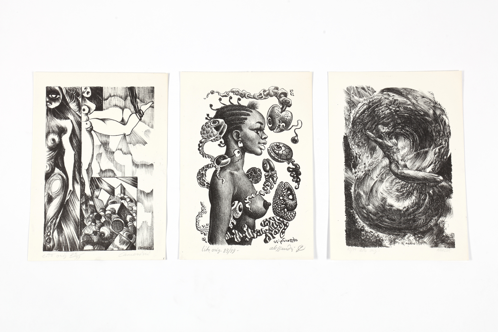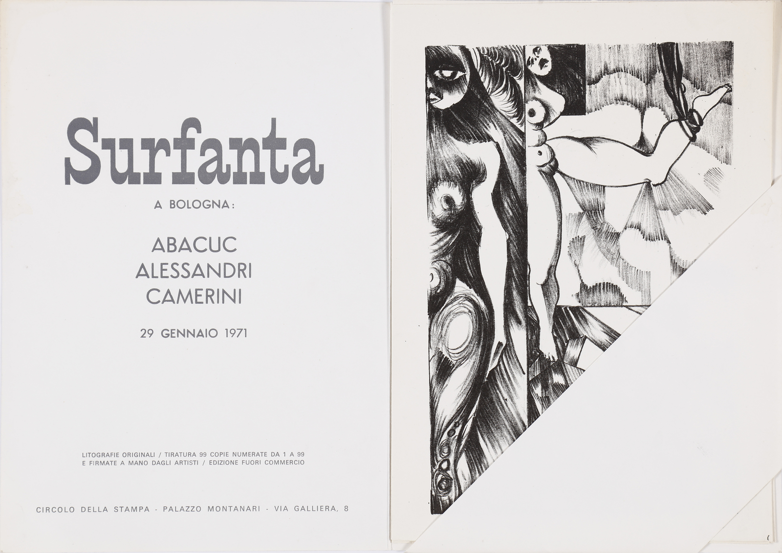ARTISTI VARI Senza titolo. 1971. Litografia (cartella completa). Cm 17,50 x 25,00. 83/99. Cartella composta da n.3 litografie di Abacuc, Alessandri e Camerini e un disegno su carta di Camerini.