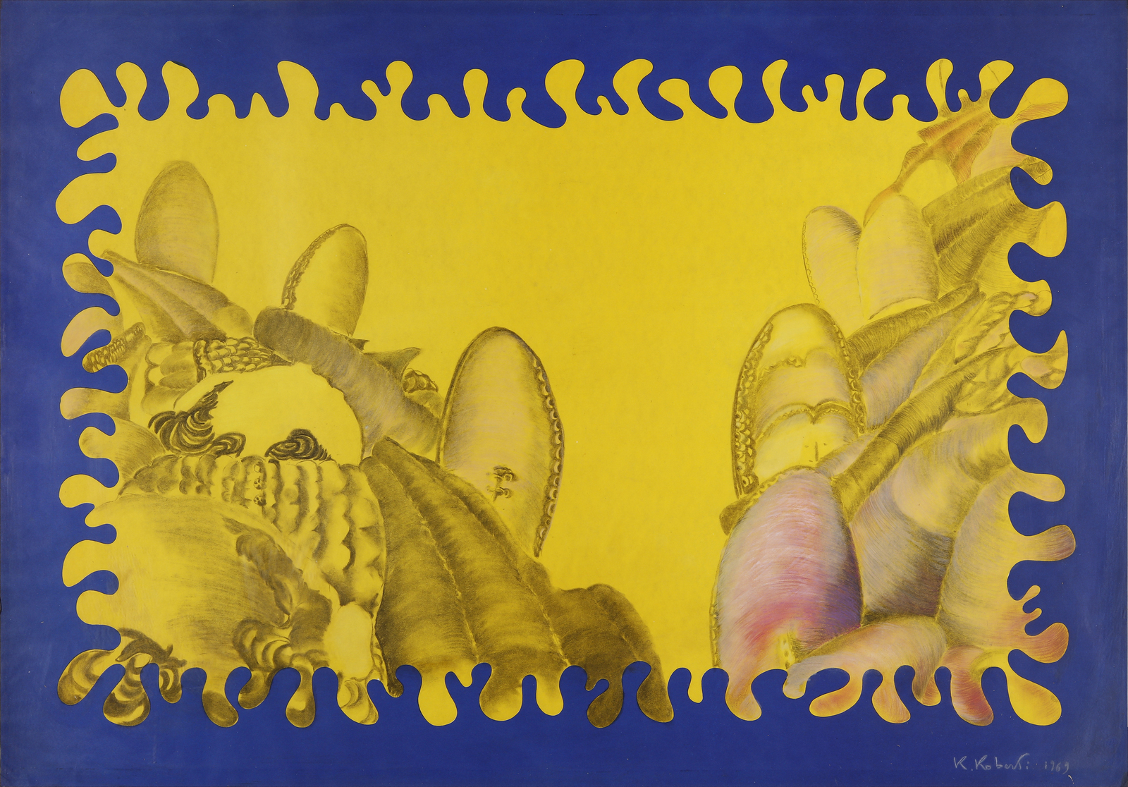2. Senza titolo, tecnica mista su carta, 100x70 cm, 1969. Firma e anno in basso a destra.