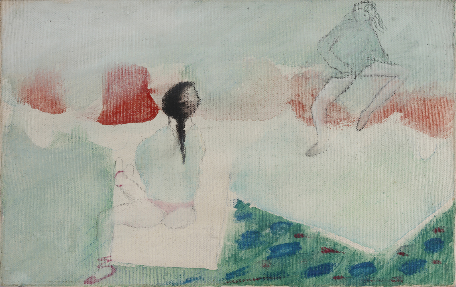 10. Senza titolo, tecnica mista su carta, 60.5x49.5 cm, 1966. Firma e anno in basso a destra. Difetti.