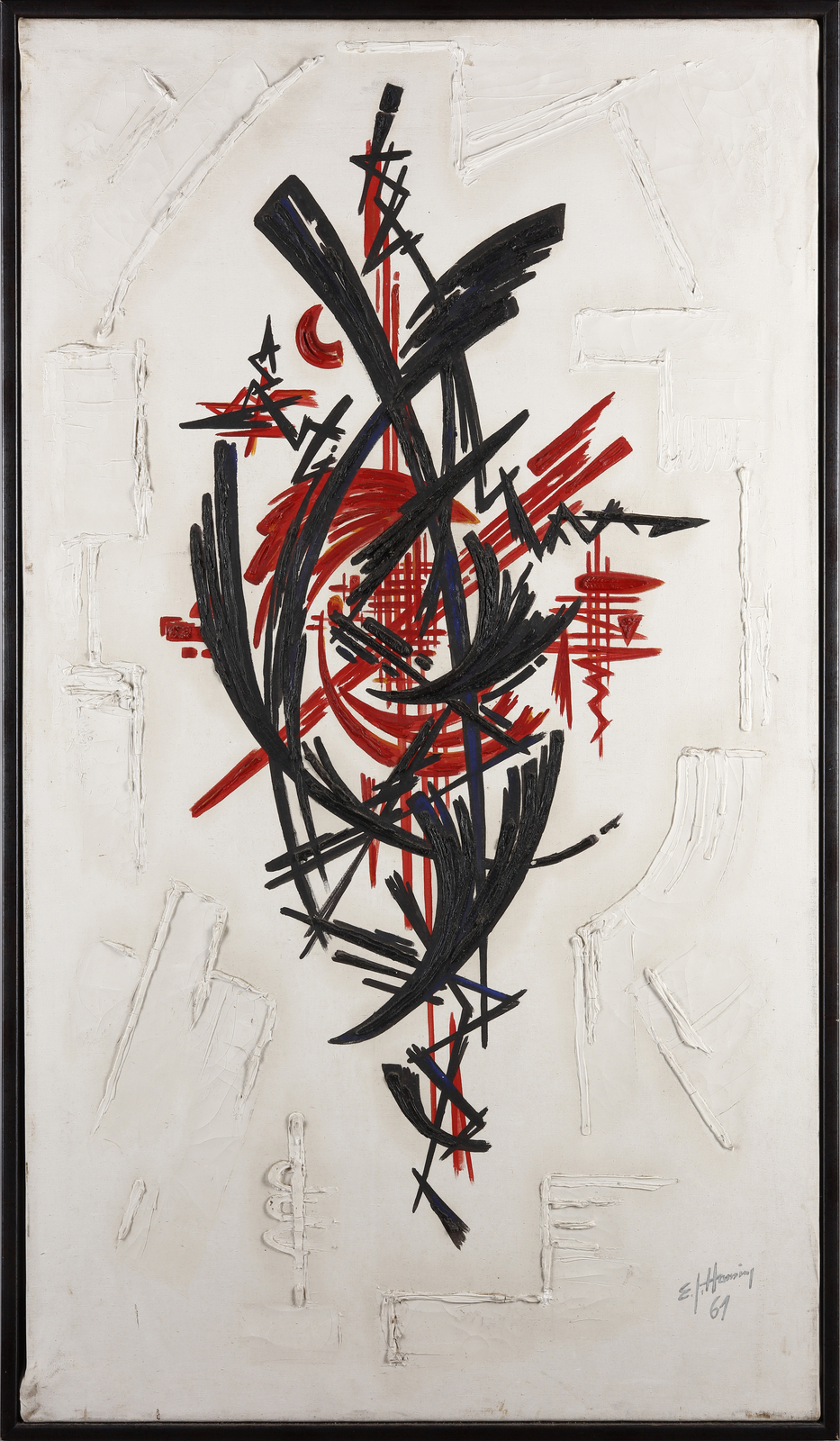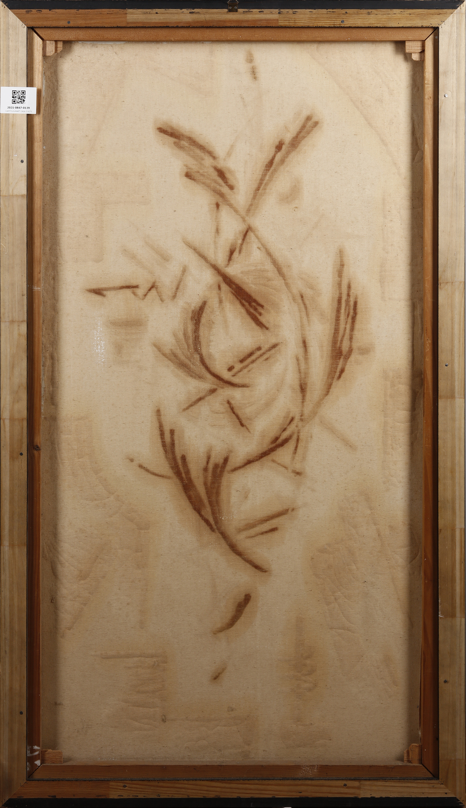 8. Senza titolo, tecnica mista su tela, 66x115,1961. Firma e anno in basso a destra.