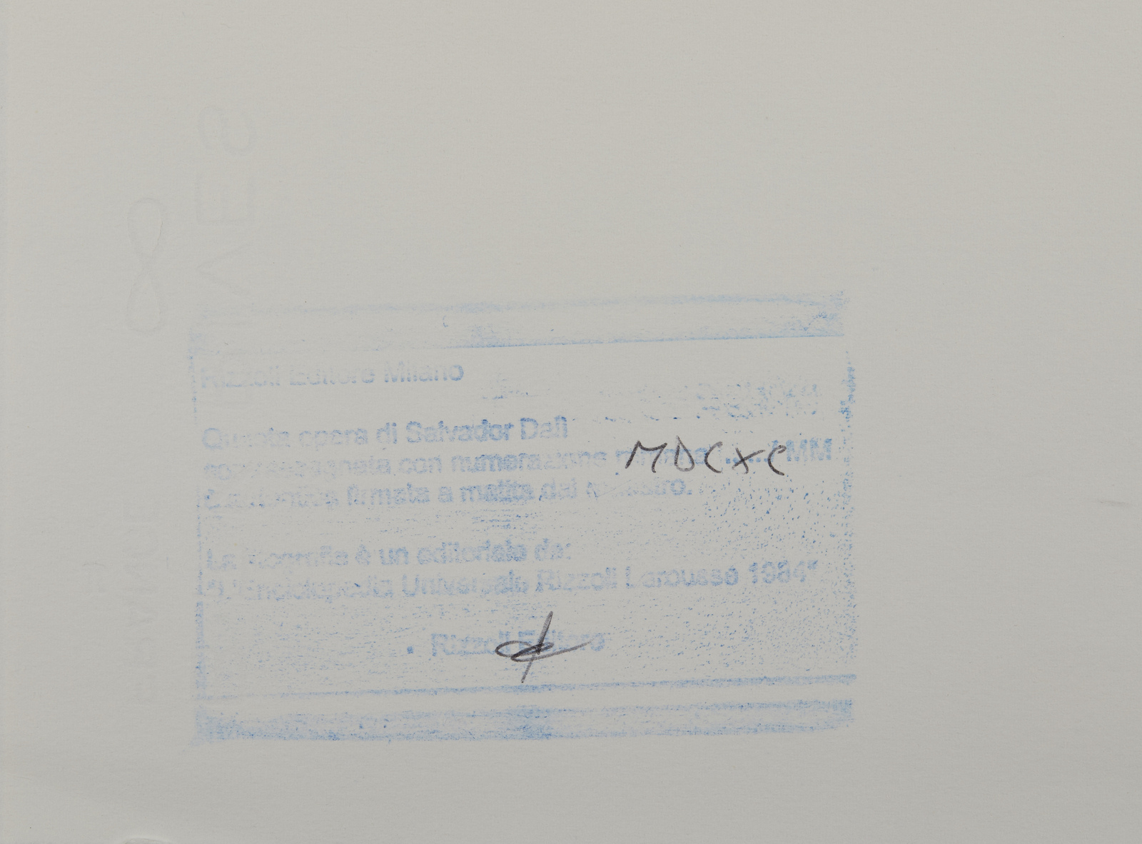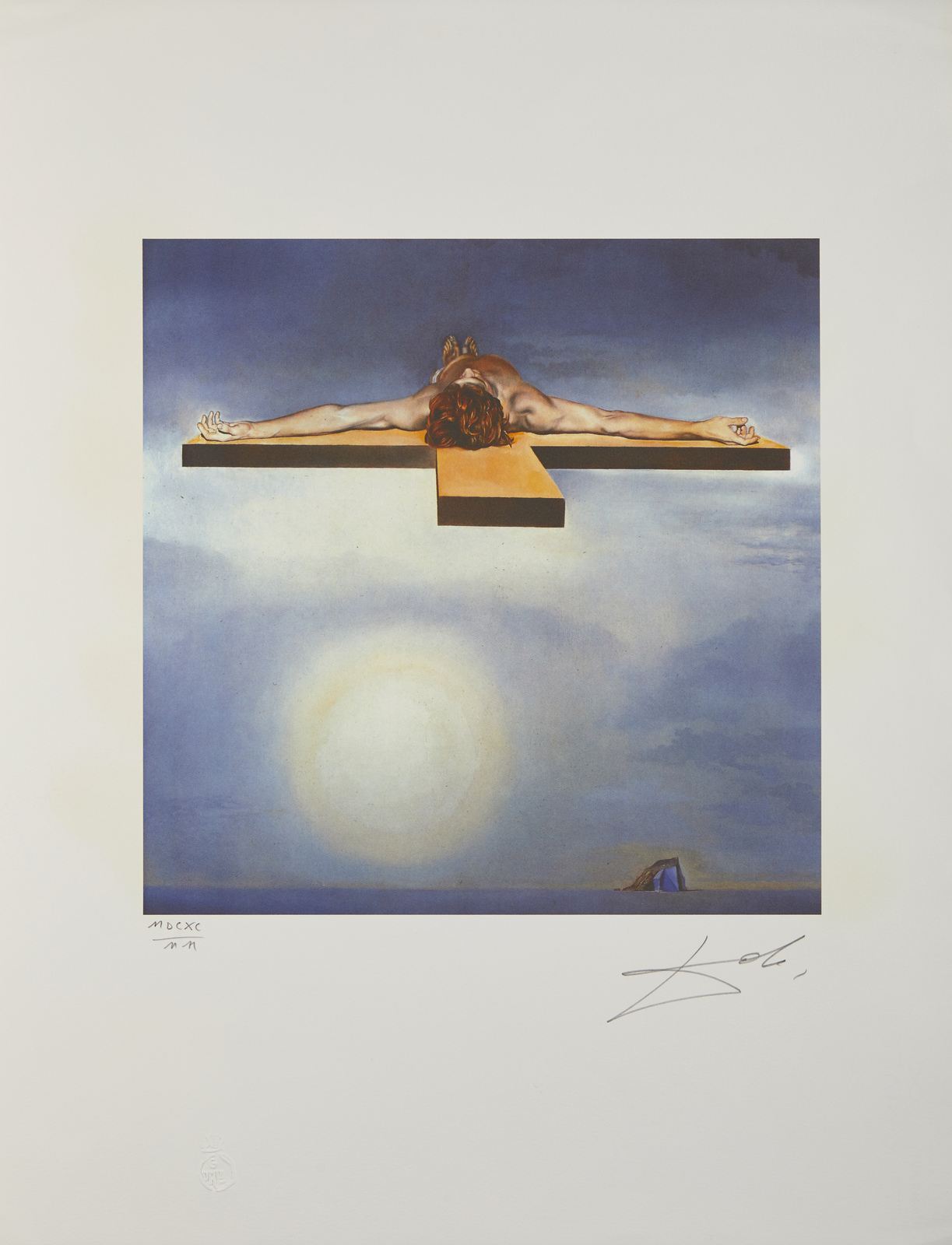 DALI' SALVADOR (1904 - 1989) Il Cristo di Gala. . Litografia offset. Cm 50,00 x 65,50. MDCXC/MM. Tiratura e firma in basso a matita. Timbro a secco Dalì in basso a sinistra. Rizzoli Editore, Milano.