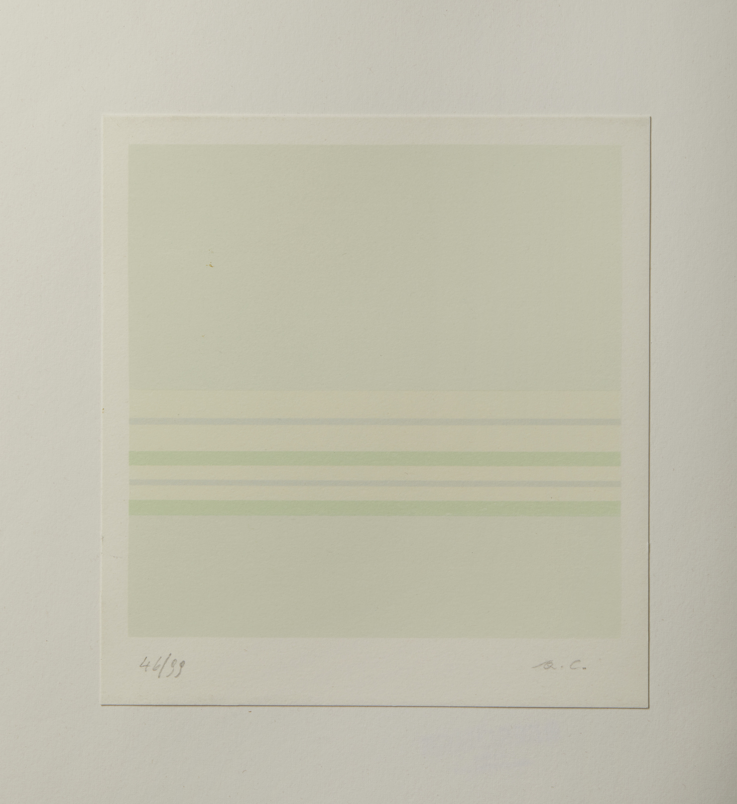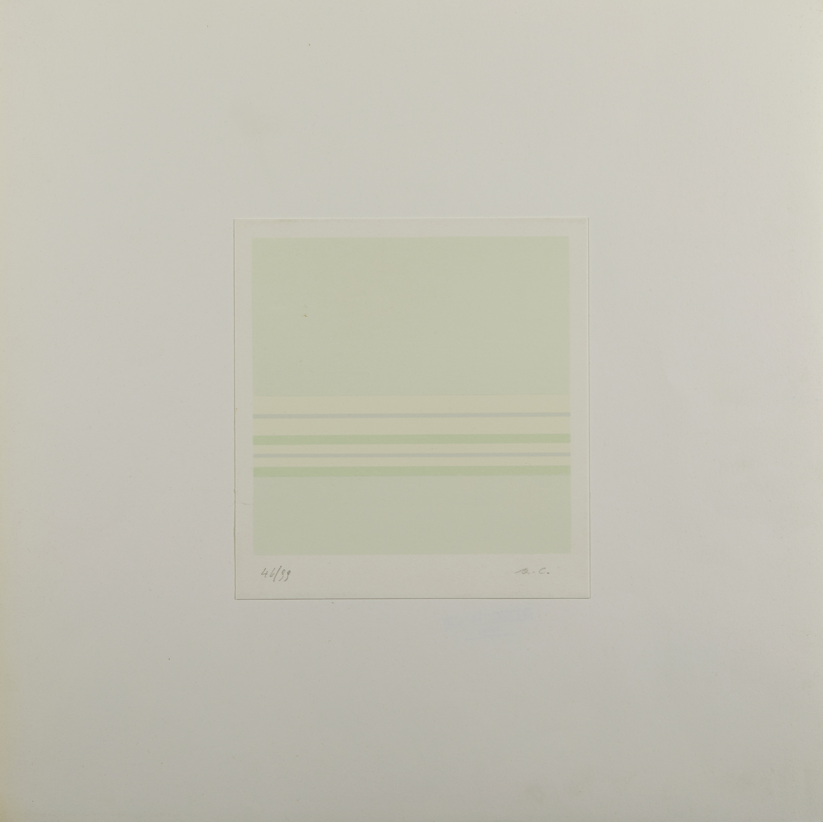 CALDERARA ANTONIO (1903 - 1978) Senza titolo. . 1978. Serigrafia.. Cm 20,00 x 21,50. 46/99 a.c.Tiratura in basso a matita. Al retro firma stampata, tiratura, anno e timbro Galleria Arscritica, Roma.