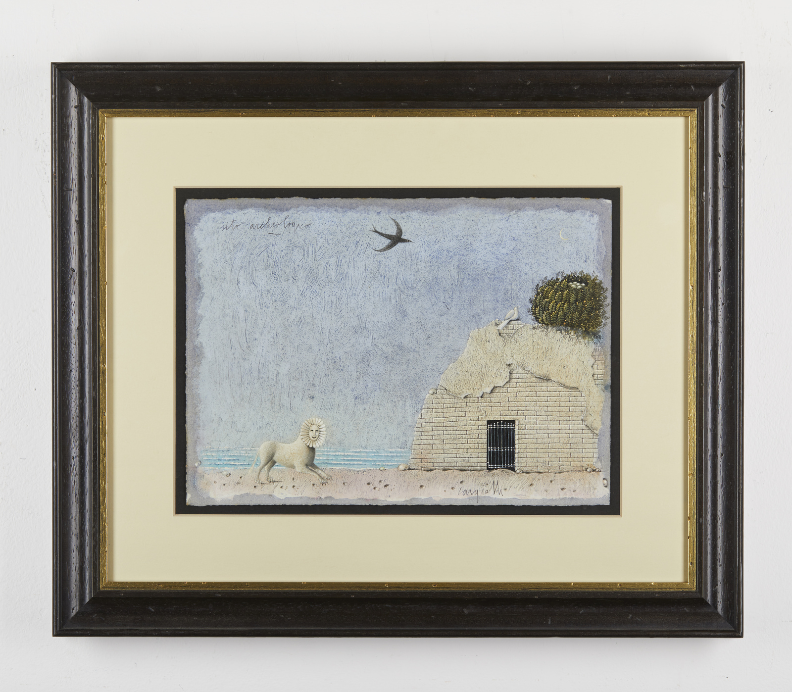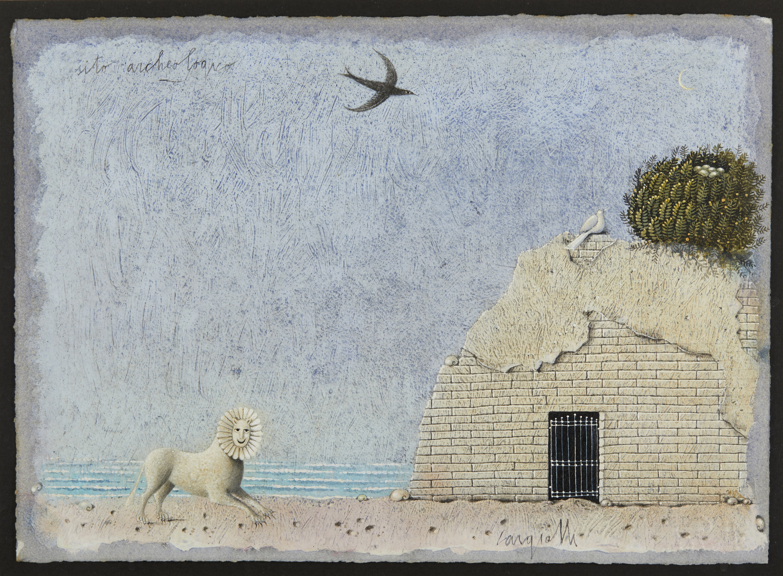 CARGIOLLI CLAUDIO (n. 1952) Sito archeologico. . Olio su carta. Cm 34,50 x 25,00. Firma in basso a destra, titolo in alto a sinistra. Autentica dell'artista su fotografia. . Cornice presente