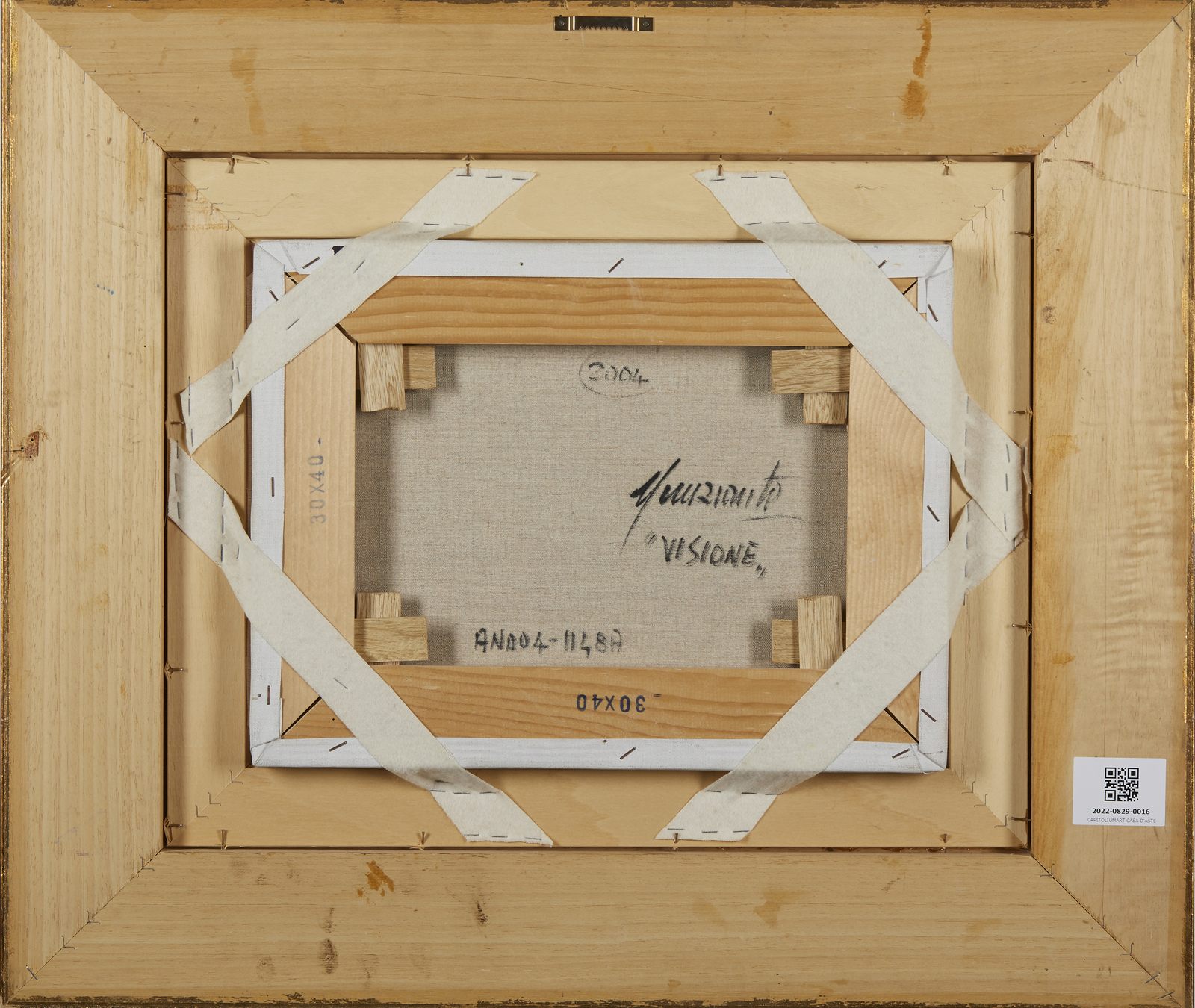 NUNZIANTE ANTONIO (n. 1956) Visione. . 2004. Olio su tela . Cm 40,00 x 30,00. Firma in basso a destra. Al retro titolo, firma e anno. Opera archiviata presso l'Archivio Antonio Nunziante - Metamediale, Torino, come da documentazione fotografica allegata all'opera riportante il relativo numero d'inventario.