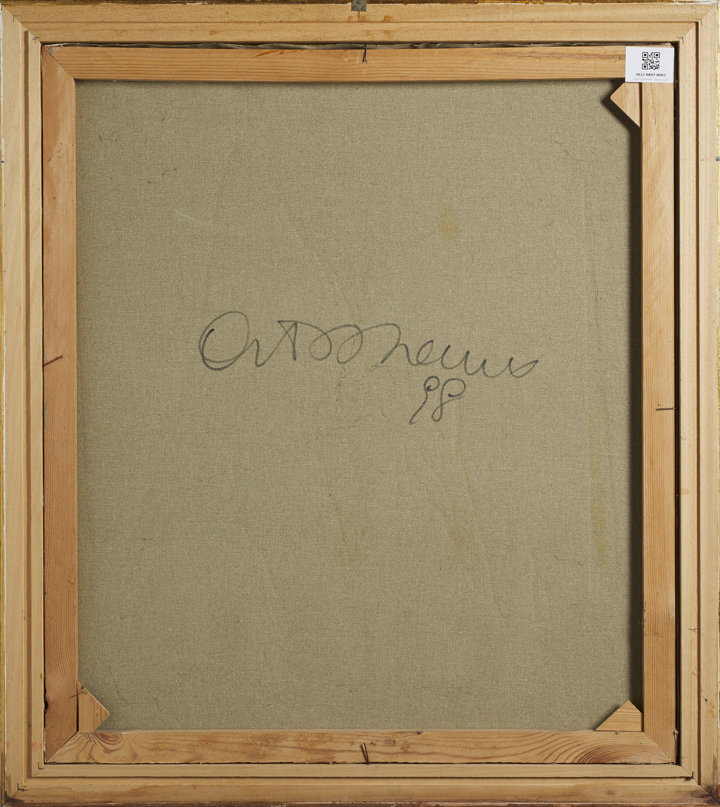 DEL DONNO ANTONIO (1927 - 2021) Qualità in azione. 1998. Tecnica mista su tela. Cm 69,50 x 79,50. Firma e anno al retro. Lievi difetti. Cornice presente