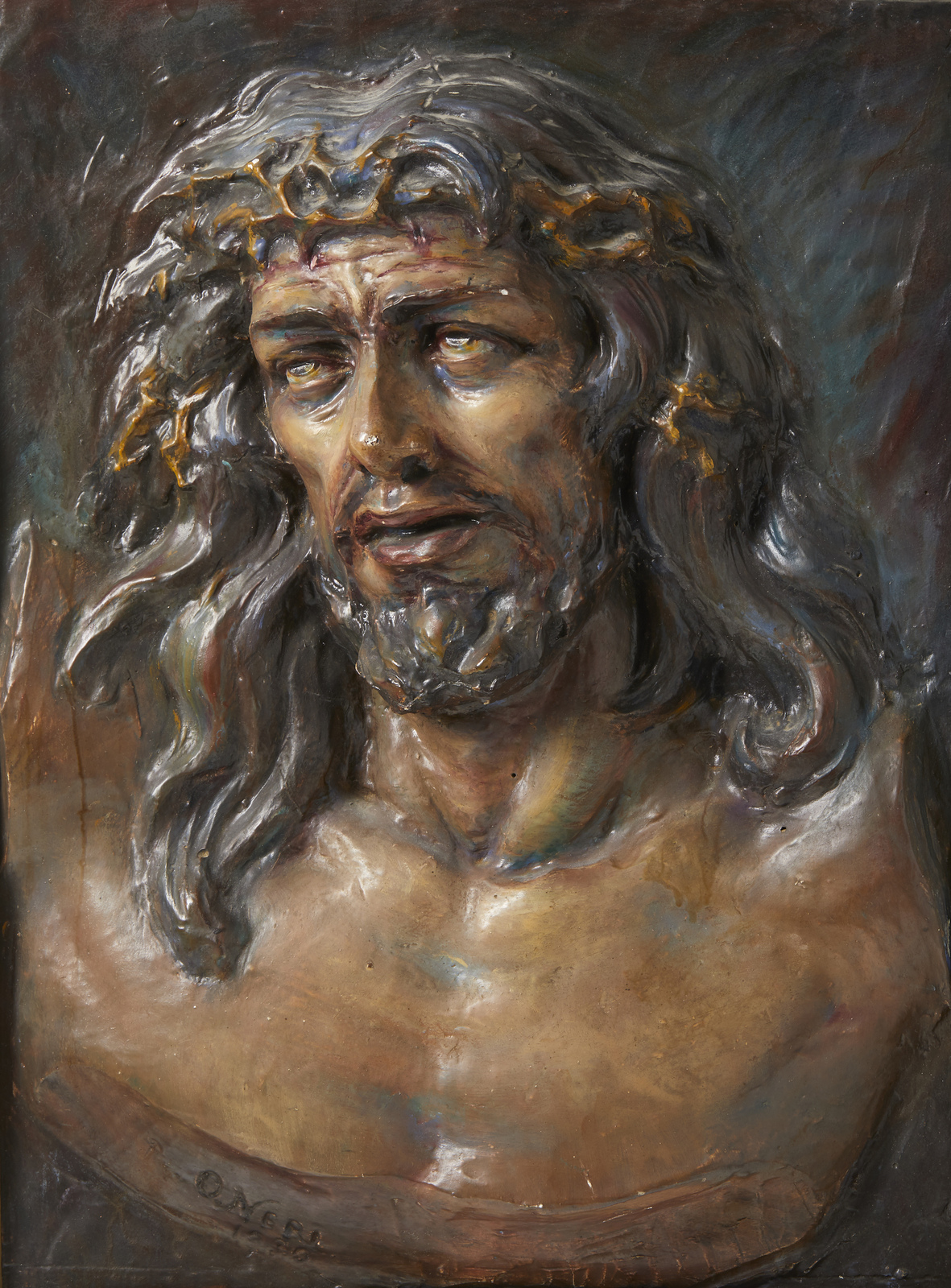 NERI ODOARDO (1882 - 1940) Senza titolo. 1930. Gesso. Cm 60,00 x 75,00. Cornice di mano dell'artista. Dimensione opera: 53x40 cm. Firma e anno incise in basso a sinistra. Cornice presente