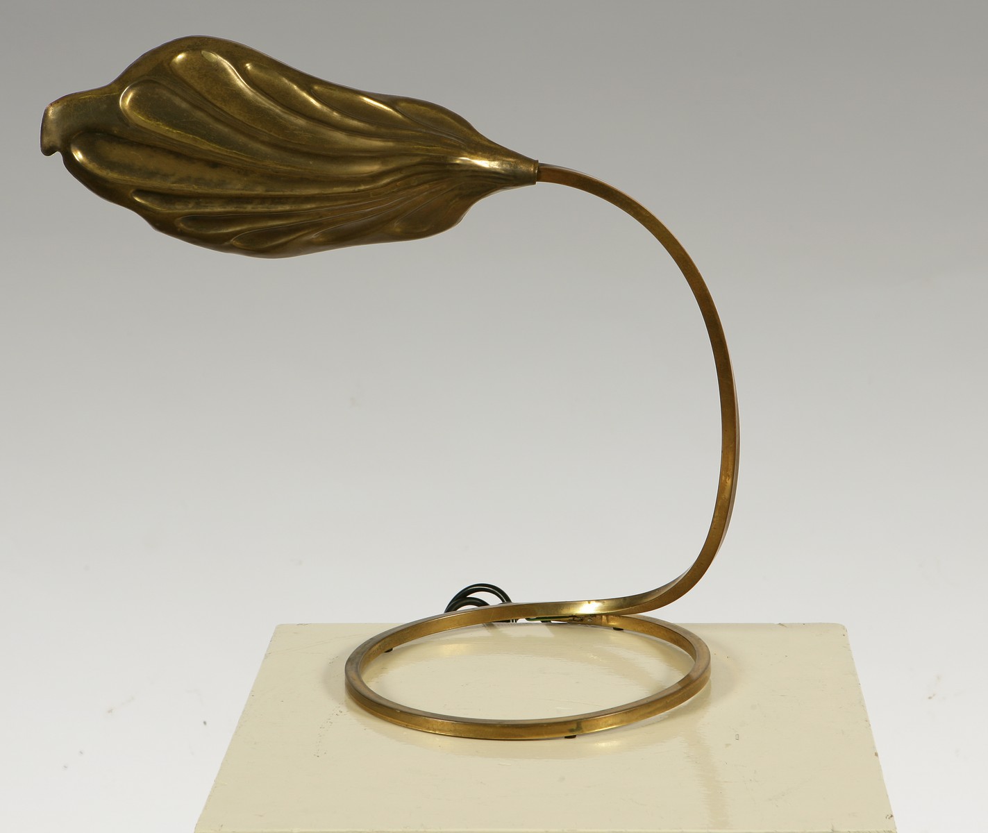 BARBI TOMMASO. Lampada Foglia da appoggio in ottone. Leaf table lamp in brass. Ottone. Cm 45x41x24. 1970.