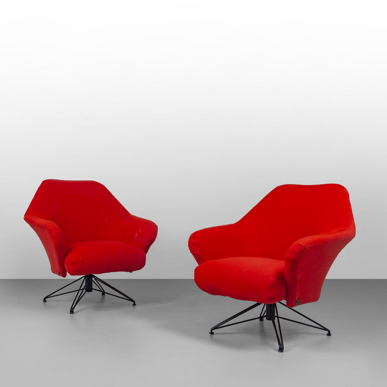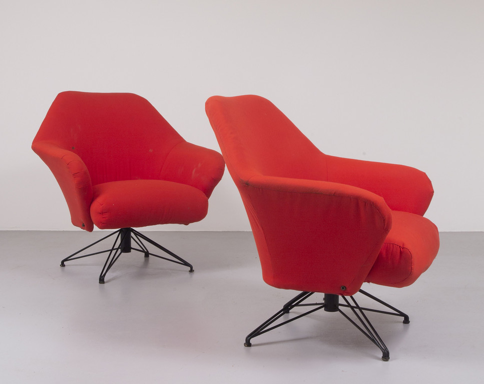 Due poltrone girevoli oscillanti 'P32' 1958.