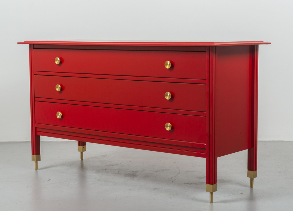 Lacquered wood and brass.