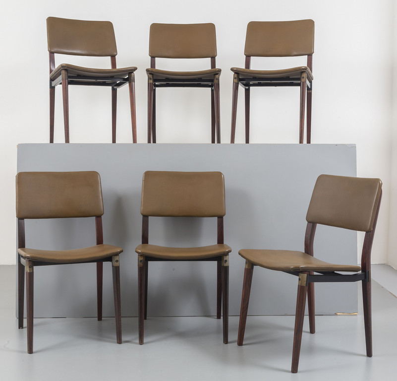 Acciaio verniciato legno di teak imbottiture rivestite in pelle.